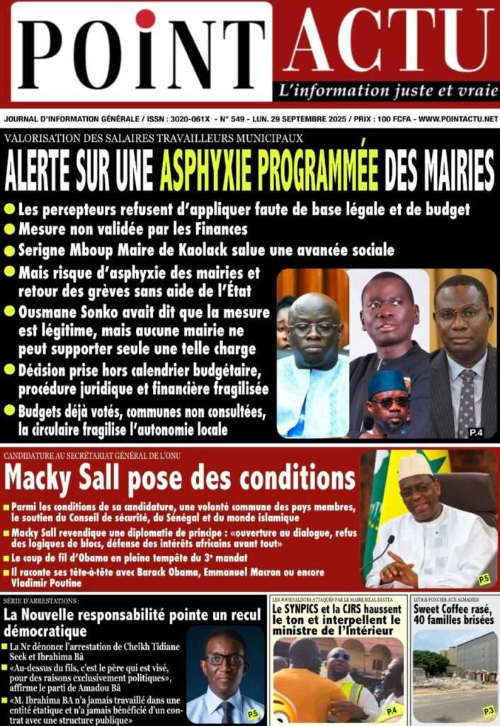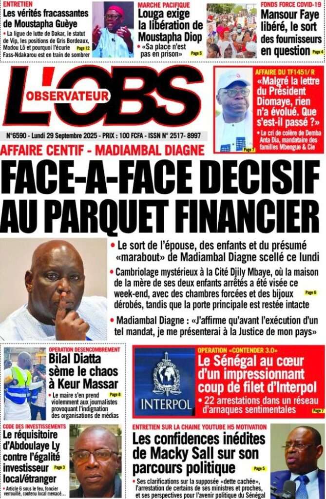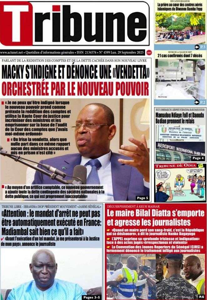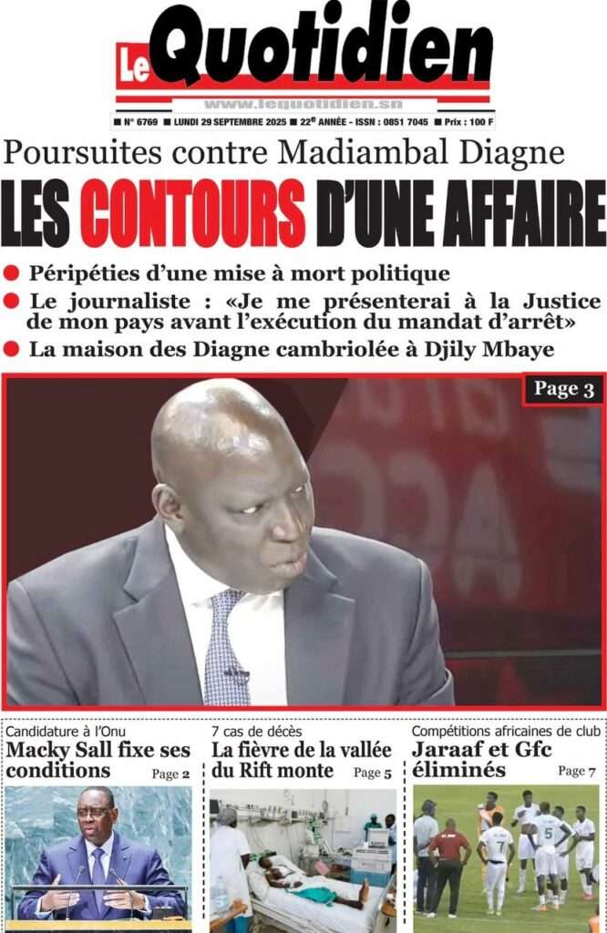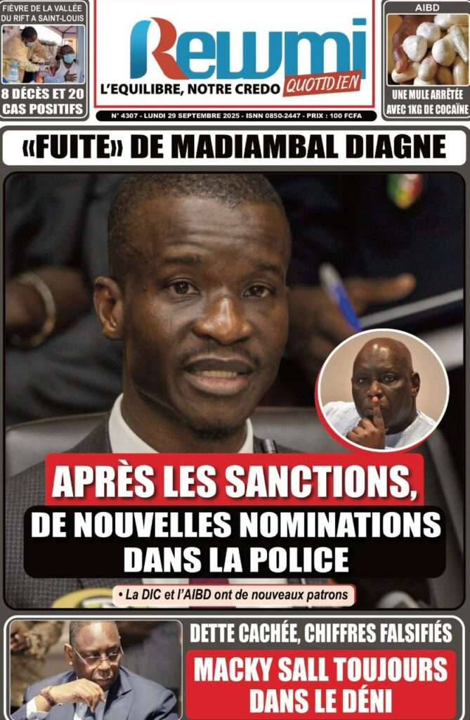 A la Une Actualité La Une Des Quotidiens – Lundi 29 Septembre 2025 (Avec Ma Revue De Presse) Bour Sine septembre 29, 2025 0 Post navigation Previous: Crise politique au Sénégal : Thierno Lo plaide pour une Commission de vérité et réconciliationNext: La Une Des Quotidiens – Mardi 30 Septembre 2025 (Avec Ma Revue De Presse) More Stories A la Une Actualité Politique Ce que change la nouvelle loi électorale adoptée par les députés Bour Sine avril 28, 2026 0 A la Une Actualité Politique « Ensemble, nous sommes une force »Par Hamidou Thiaw, Président du MPR Bour Sine avril 28, 2026 0 A la Une Actualité Pape Malick Ndour envoyé en prison Bour Sine avril 28, 2026 0 Laisser un commentaire Annuler la réponseVotre adresse e-mail ne sera pas publiée. Les champs obligatoires sont indiqués avec *Commentaire * Nom * E-mail * Site web Enregistrer mon nom, mon e-mail et mon site dans le navigateur pour mon prochain commentaire.