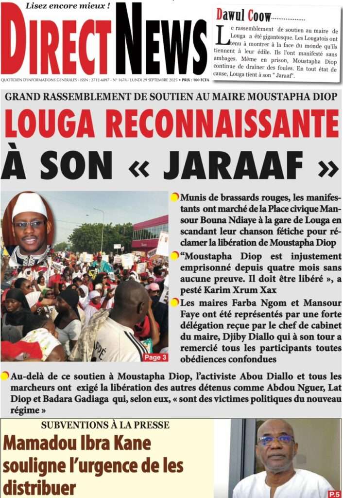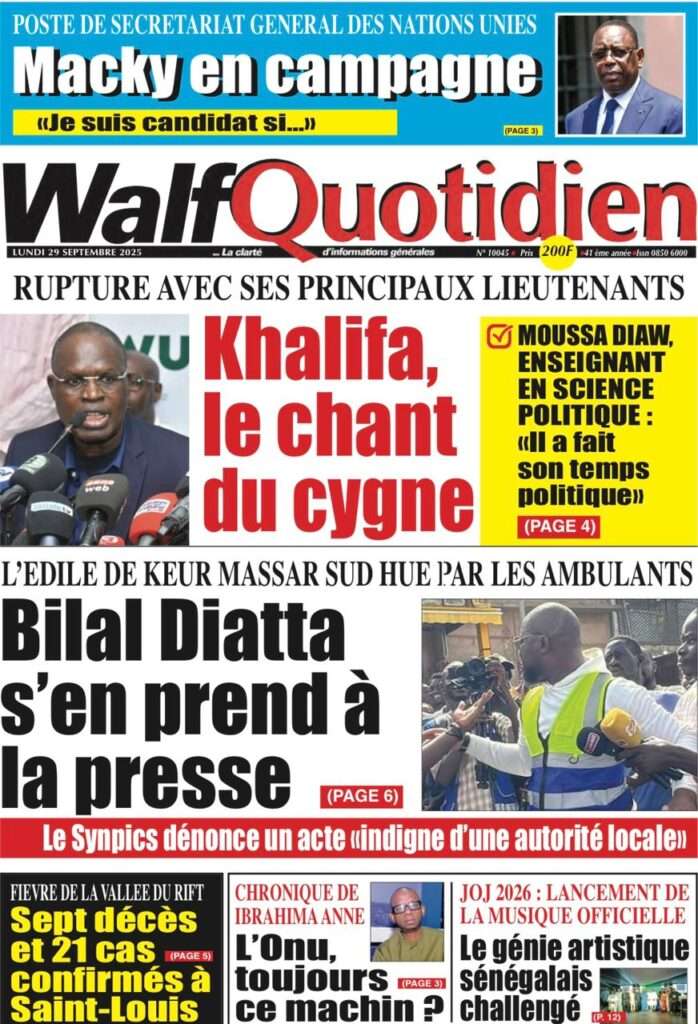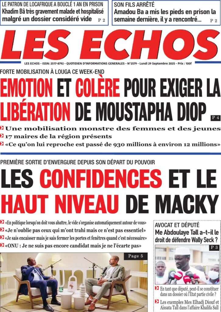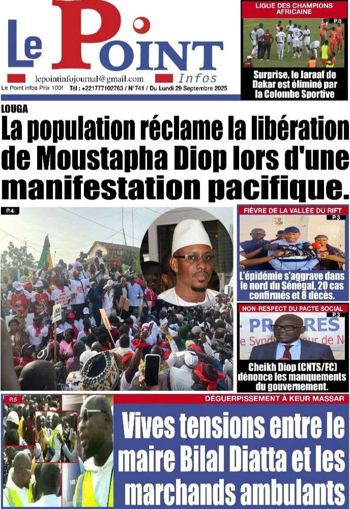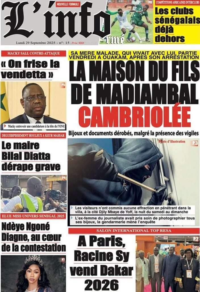 A la Une Actualité La Une Des Quotidiens – Lundi 29 Septembre 2025 (Avec Ma Revue De Presse) Bour Sine septembre 29, 2025 0 Post navigation Previous: Crise politique au Sénégal : Thierno Lo plaide pour une Commission de vérité et réconciliationNext: La Une Des Quotidiens – Mardi 30 Septembre 2025 (Avec Ma Revue De Presse) More Stories A la Une Actualité Politique Ce que change la nouvelle loi électorale adoptée par les députés Bour Sine avril 28, 2026 0 A la Une Actualité Politique « Ensemble, nous sommes une force »Par Hamidou Thiaw, Président du MPR Bour Sine avril 28, 2026 0 A la Une Actualité Pape Malick Ndour envoyé en prison Bour Sine avril 28, 2026 0 Laisser un commentaire Annuler la réponseVotre adresse e-mail ne sera pas publiée. Les champs obligatoires sont indiqués avec *Commentaire * Nom * E-mail * Site web Enregistrer mon nom, mon e-mail et mon site dans le navigateur pour mon prochain commentaire.