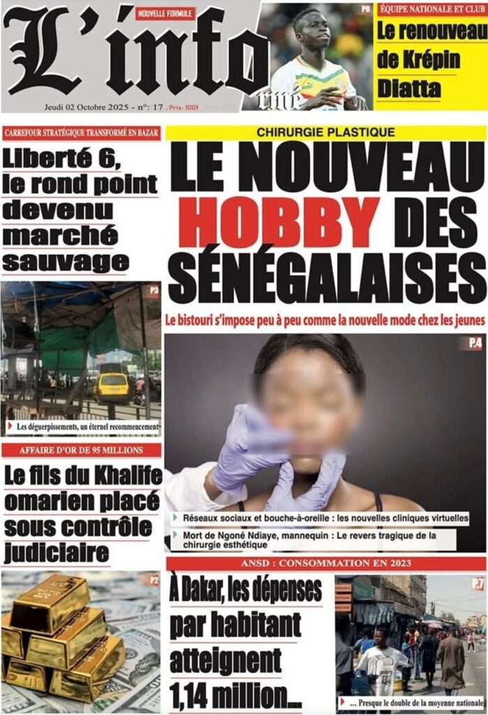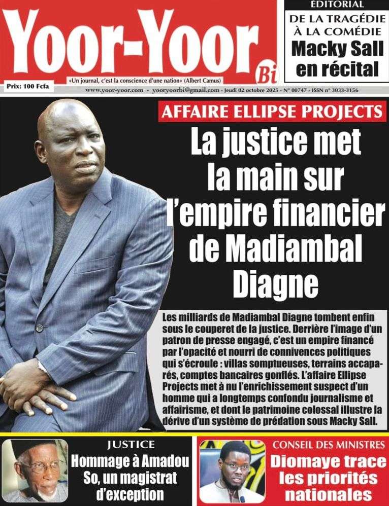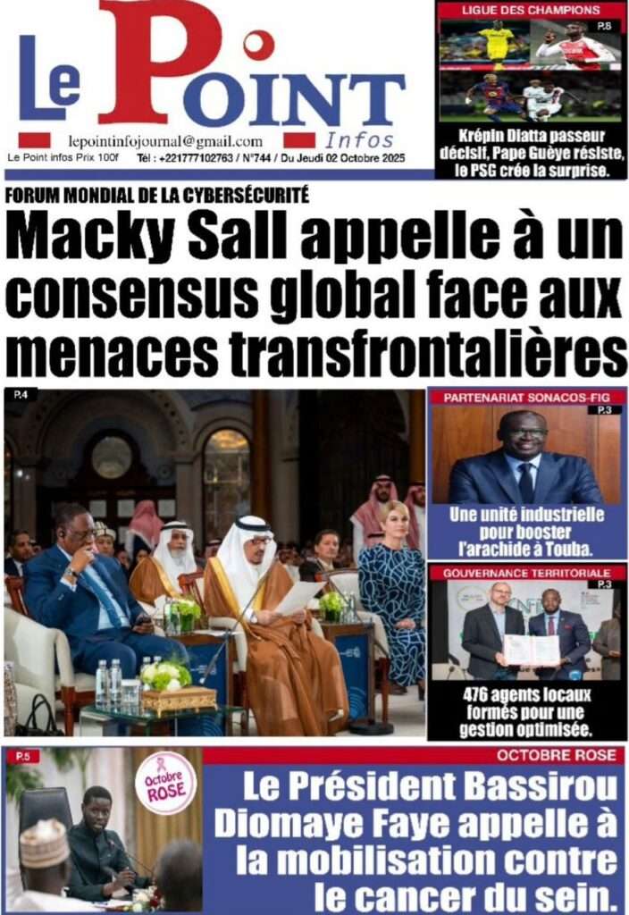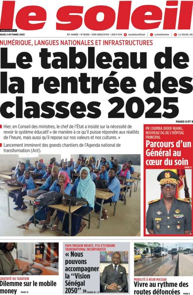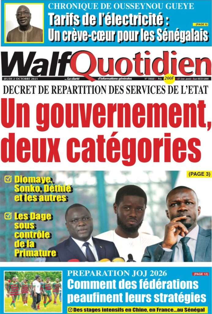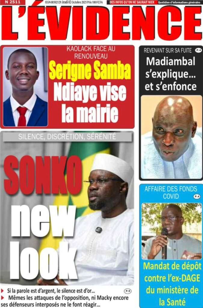 A la Une Actualité La Une Des Quotidiens – Jeudi 02 Octobre 2025 (Avec Ma Revue De Presse) Bour Sine octobre 2, 2025 0 Post navigation Previous: 01 Octobre : Hommage à une icône internationaleNext: Gouvernement : communiqué du Conseil des ministres du mercredi 01 octobre 2024 More Stories A la Une Actualité Politique Ce que change la nouvelle loi électorale adoptée par les députés Bour Sine avril 28, 2026 0 A la Une Actualité Politique « Ensemble, nous sommes une force »Par Hamidou Thiaw, Président du MPR Bour Sine avril 28, 2026 0 A la Une Actualité Pape Malick Ndour envoyé en prison Bour Sine avril 28, 2026 0 Laisser un commentaire Annuler la réponseVotre adresse e-mail ne sera pas publiée. Les champs obligatoires sont indiqués avec *Commentaire * Nom * E-mail * Site web Enregistrer mon nom, mon e-mail et mon site dans le navigateur pour mon prochain commentaire.