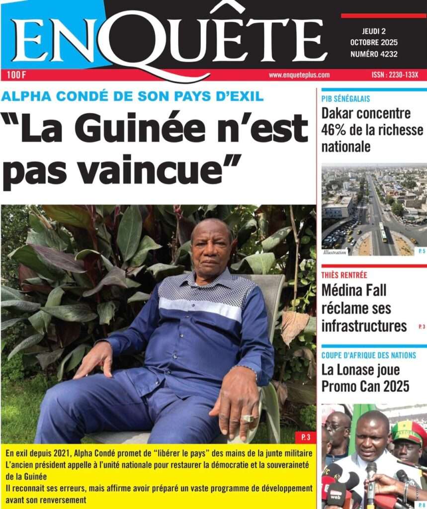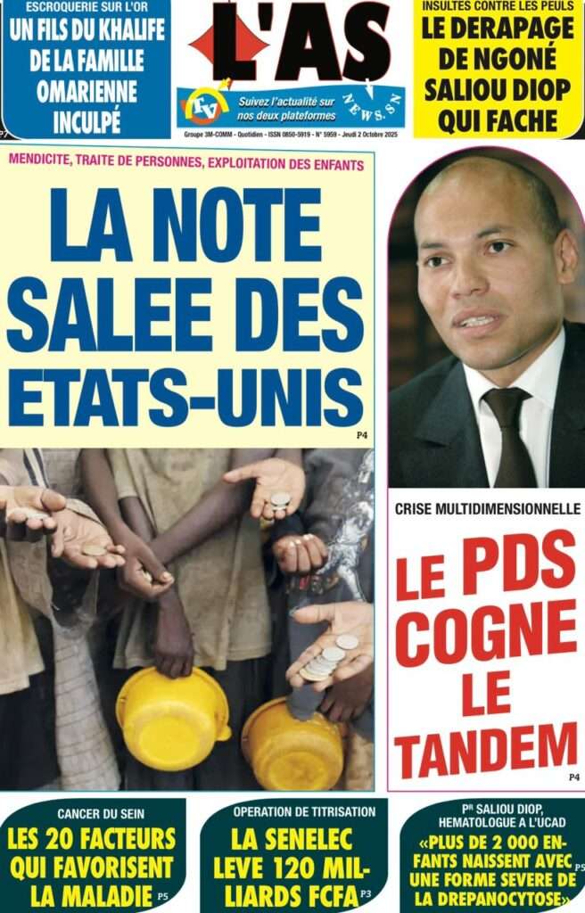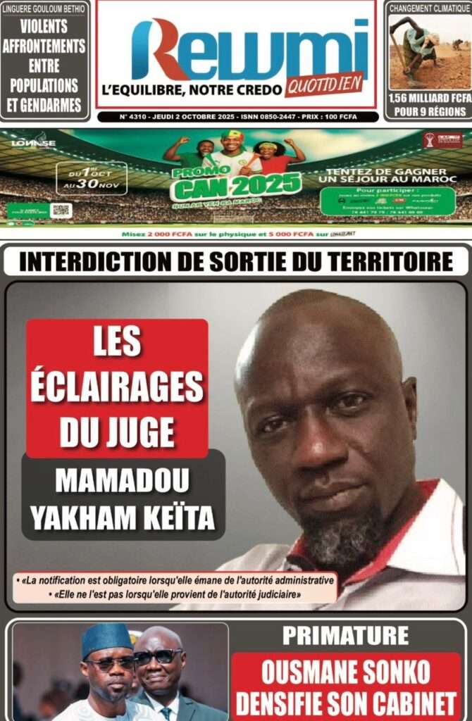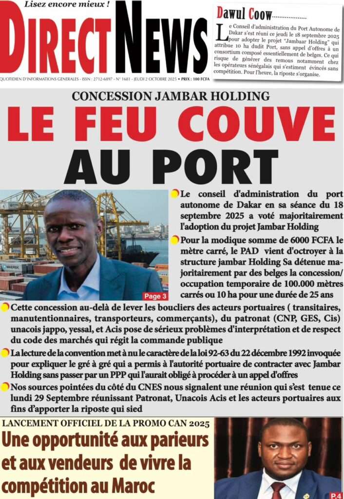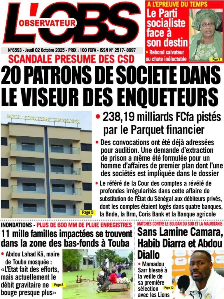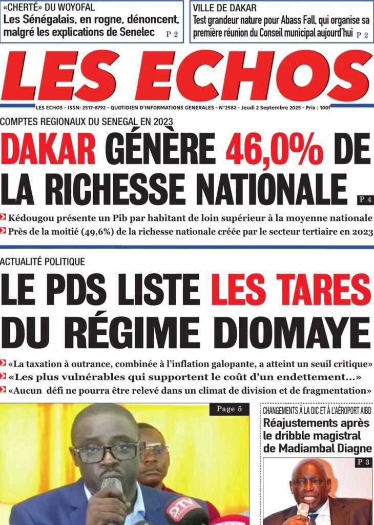 A la Une Actualité La Une Des Quotidiens – Jeudi 02 Octobre 2025 (Avec Ma Revue De Presse) Bour Sine octobre 2, 2025 0 Post navigation Previous: 01 Octobre : Hommage à une icône internationaleNext: Gouvernement : communiqué du Conseil des ministres du mercredi 01 octobre 2024 More Stories A la Une Actualité Politique Ce que change la nouvelle loi électorale adoptée par les députés Bour Sine avril 28, 2026 0 A la Une Actualité Politique « Ensemble, nous sommes une force »Par Hamidou Thiaw, Président du MPR Bour Sine avril 28, 2026 0 A la Une Actualité Pape Malick Ndour envoyé en prison Bour Sine avril 28, 2026 0 Laisser un commentaire Annuler la réponseVotre adresse e-mail ne sera pas publiée. Les champs obligatoires sont indiqués avec *Commentaire * Nom * E-mail * Site web Enregistrer mon nom, mon e-mail et mon site dans le navigateur pour mon prochain commentaire.