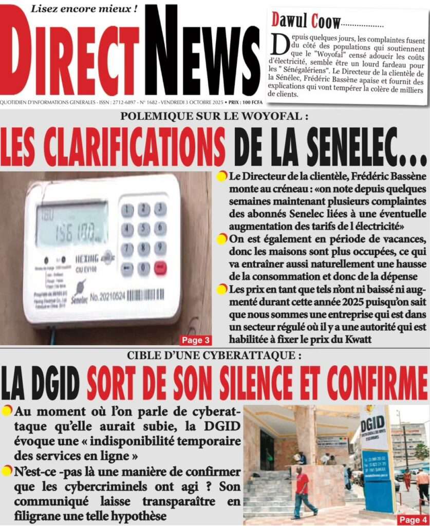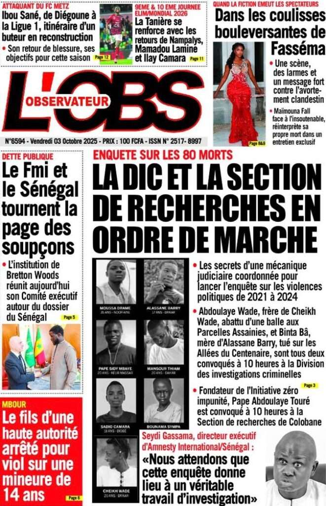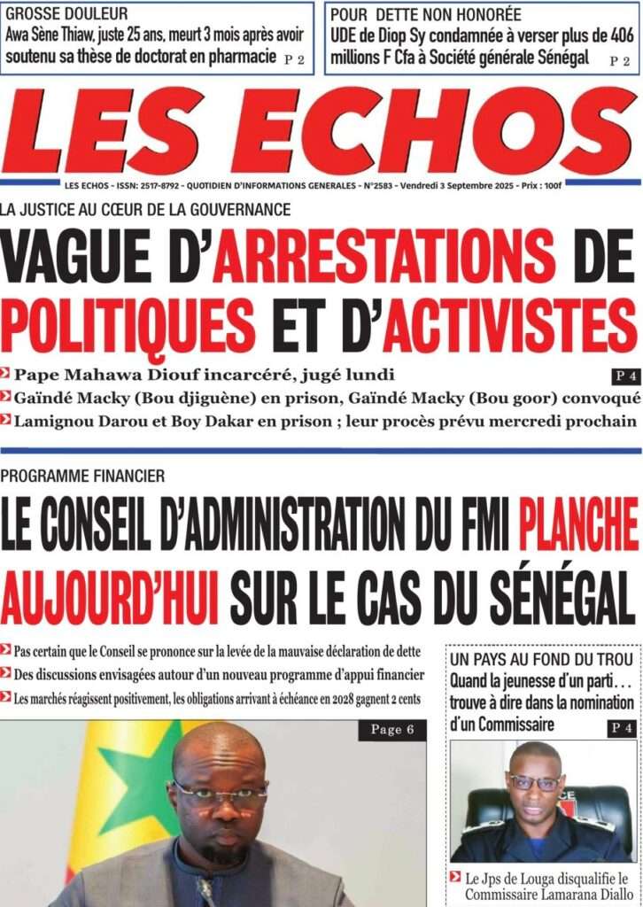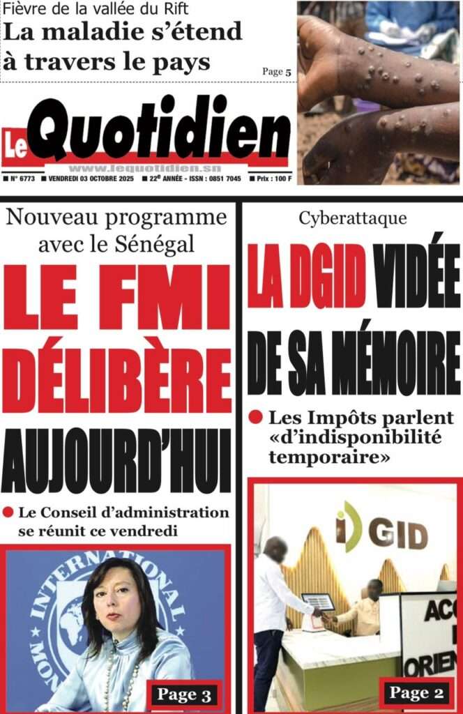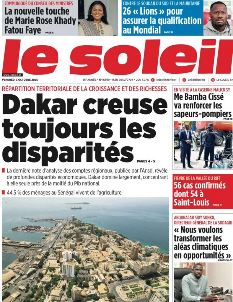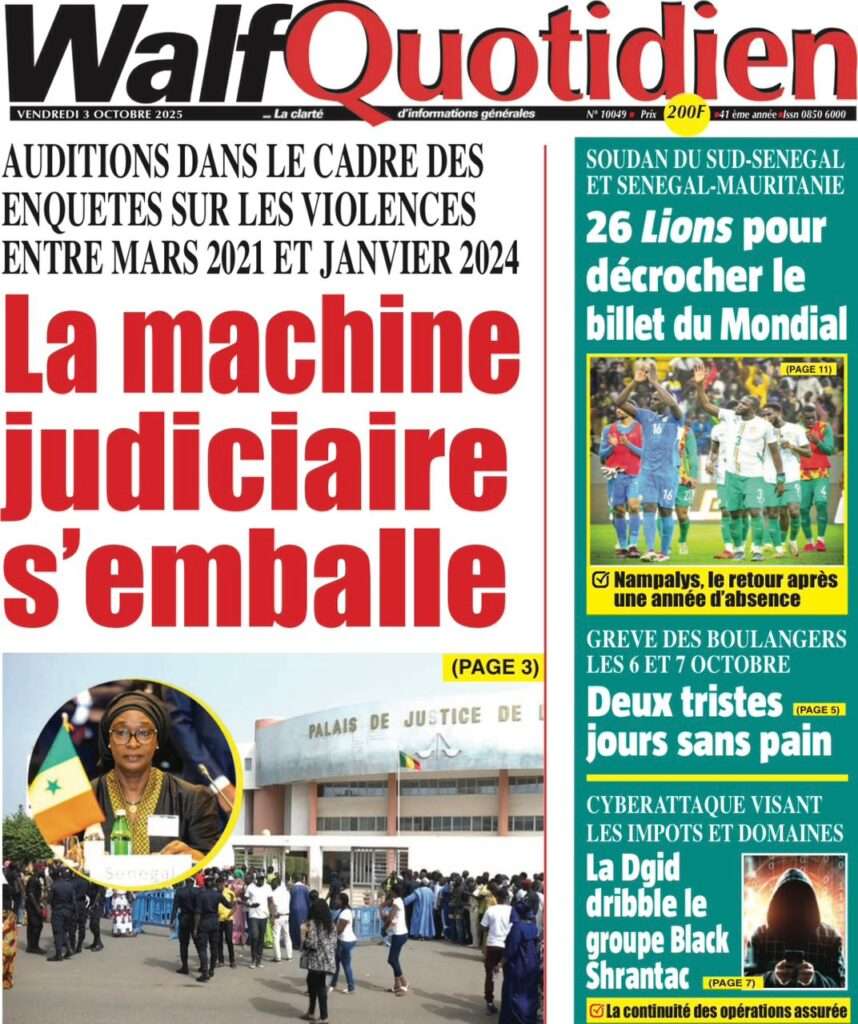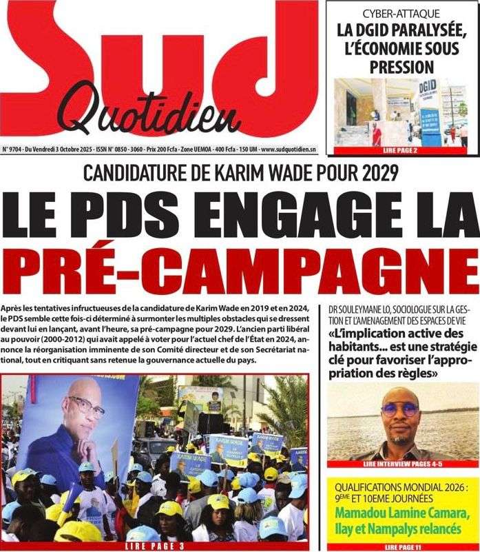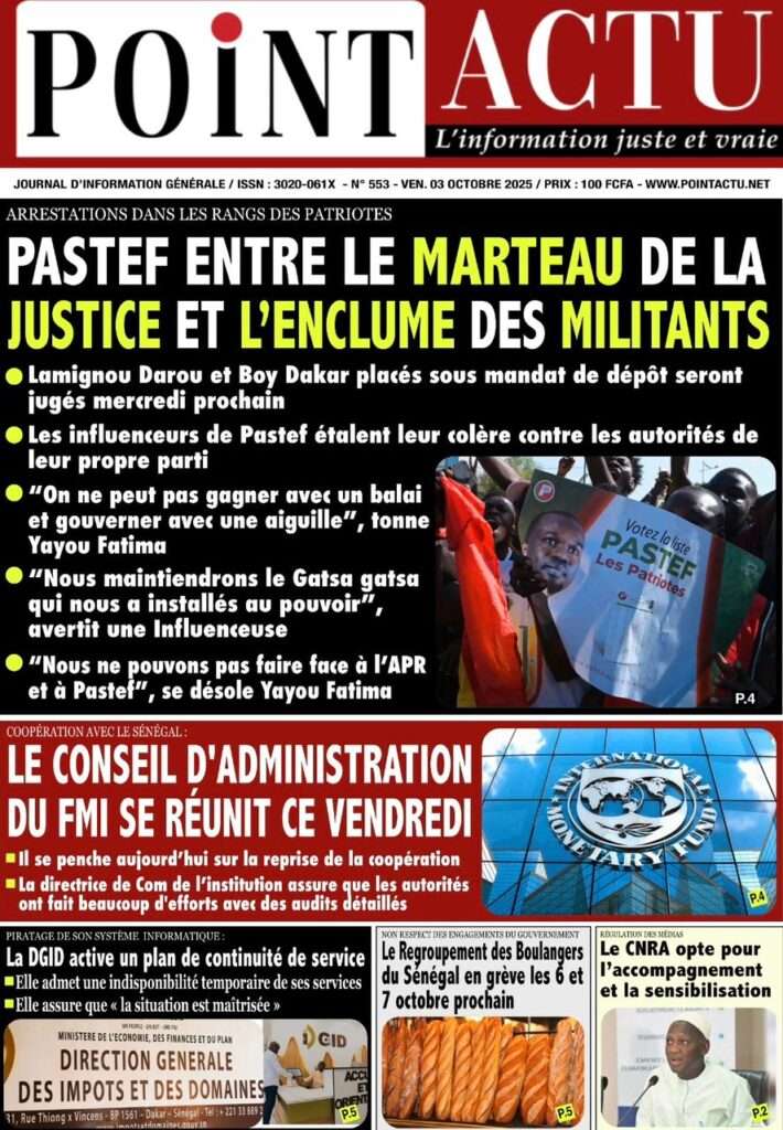 A la Une Actualité La Une Des Quotidiens – Vendredi 03 Octobre 2025 (Avec Ma Revue De Presse) Bour Sine octobre 3, 2025 0 Post navigation Previous: Macky Sall, l’Afrique au cœur ? Un peuple à dosNext: XEW-XEWU DIAMONO – Sortie de Macky Sall : défi lancé au régime ? Le PDS fait-il toujours le poids ? More Stories A la Une Actualité Politique Ce que change la nouvelle loi électorale adoptée par les députés Bour Sine avril 28, 2026 0 A la Une Actualité Politique « Ensemble, nous sommes une force »Par Hamidou Thiaw, Président du MPR Bour Sine avril 28, 2026 0 A la Une Actualité Pape Malick Ndour envoyé en prison Bour Sine avril 28, 2026 0 Laisser un commentaire Annuler la réponseVotre adresse e-mail ne sera pas publiée. Les champs obligatoires sont indiqués avec *Commentaire * Nom * E-mail * Site web Enregistrer mon nom, mon e-mail et mon site dans le navigateur pour mon prochain commentaire.