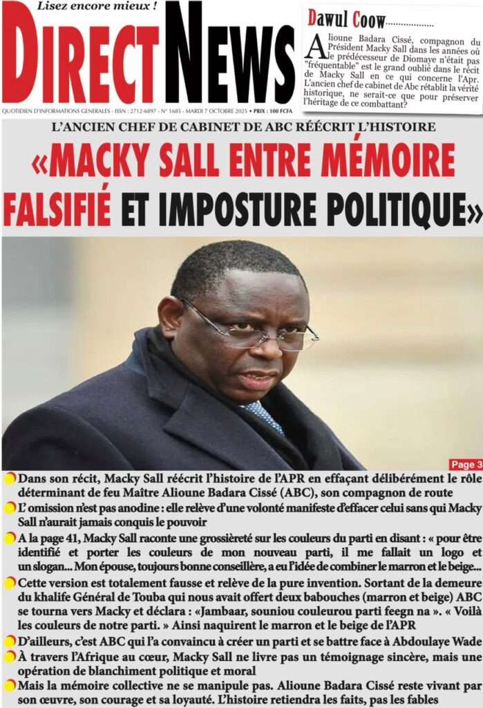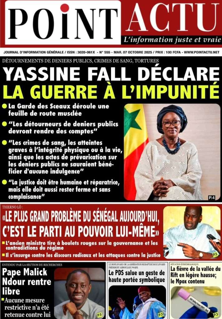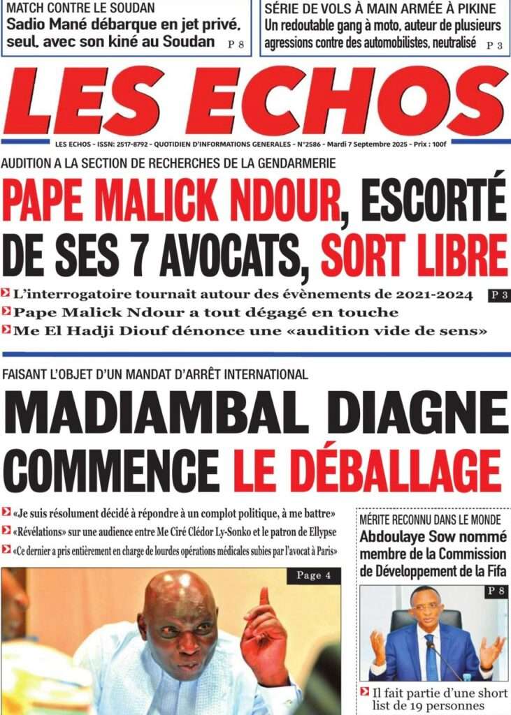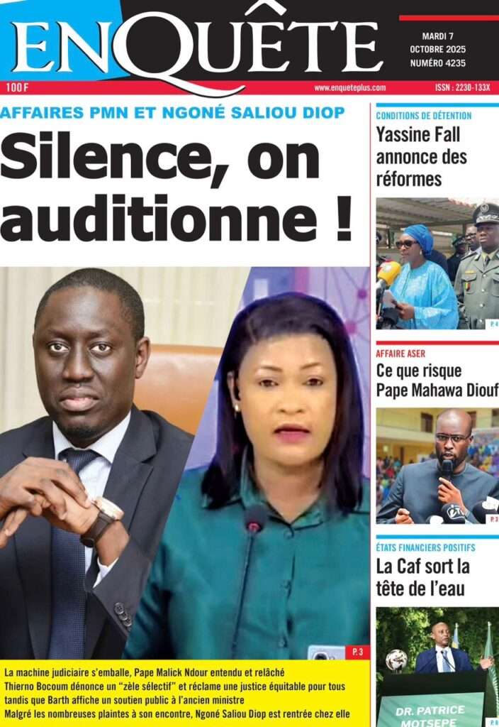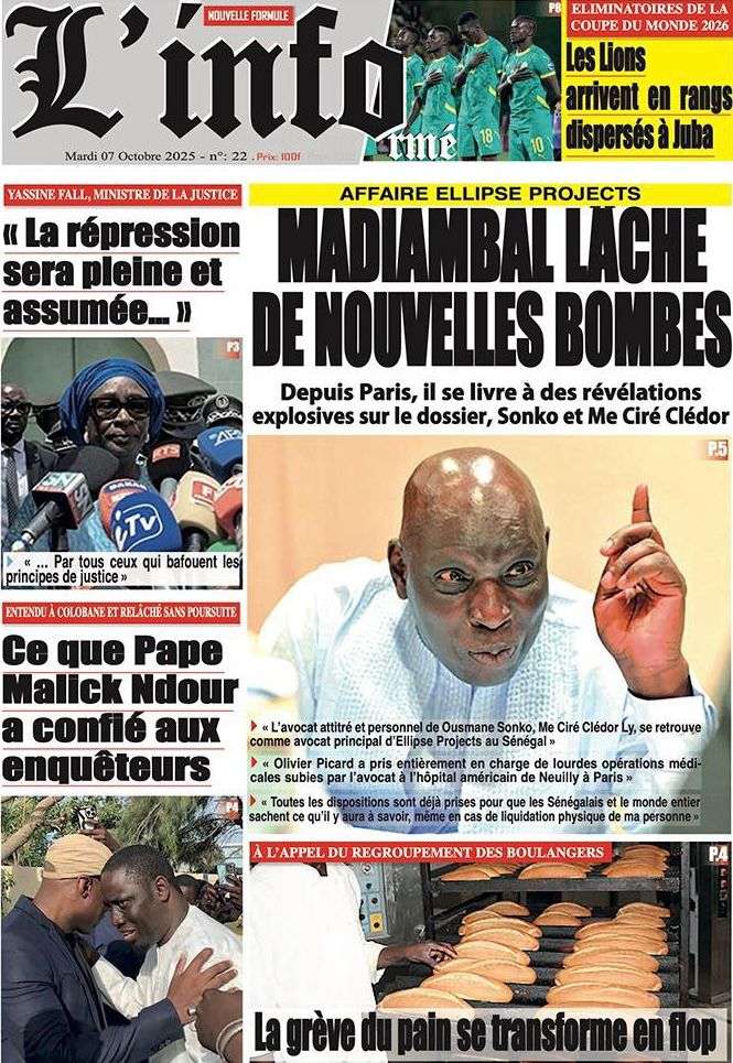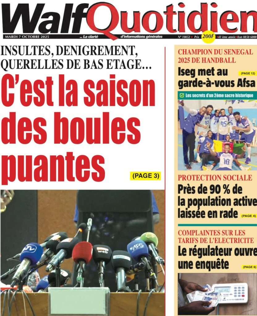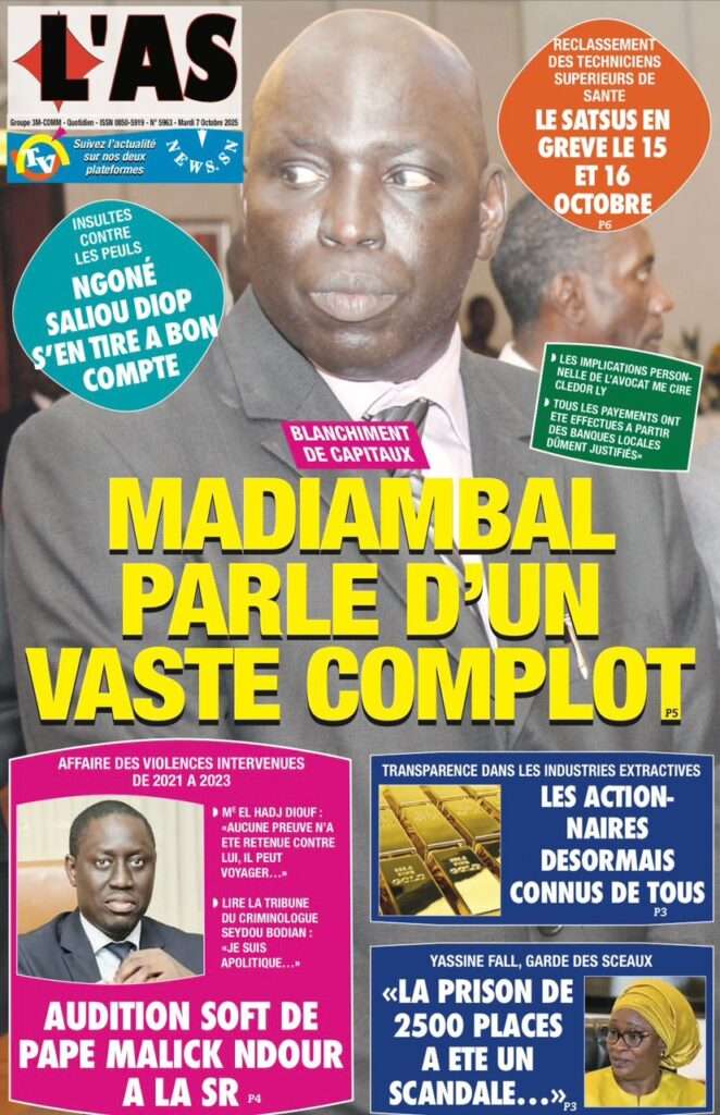 A la Une Actualité La Une Des Quotidiens – Mardi 07 Octobre 2025 (Avec Ma Revue De Presse) Bour Sine octobre 7, 2025 0 Post navigation Previous: Le Premier ministre Sébastien Lecornu démissionne, quelques heures après la formation de son nouveau gouvernementNext: Piratage de la Direction des impôts du Sénégal : une alerte nationale sur la protection de nos actifs critiques More Stories A la Une Actualité Politique Ce que change la nouvelle loi électorale adoptée par les députés Bour Sine avril 28, 2026 0 A la Une Actualité Politique « Ensemble, nous sommes une force »Par Hamidou Thiaw, Président du MPR Bour Sine avril 28, 2026 0 A la Une Actualité Pape Malick Ndour envoyé en prison Bour Sine avril 28, 2026 0 Laisser un commentaire Annuler la réponseVotre adresse e-mail ne sera pas publiée. Les champs obligatoires sont indiqués avec *Commentaire * Nom * E-mail * Site web Enregistrer mon nom, mon e-mail et mon site dans le navigateur pour mon prochain commentaire.