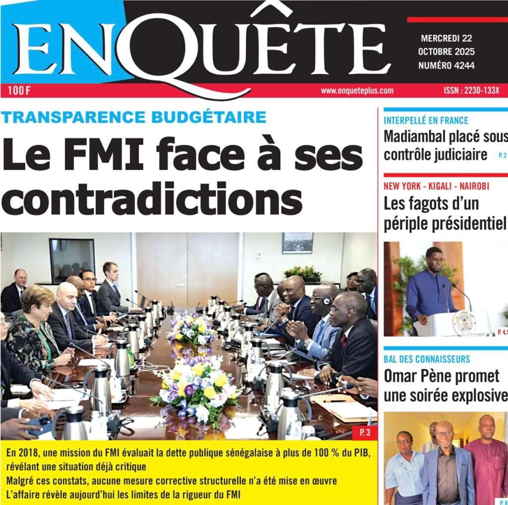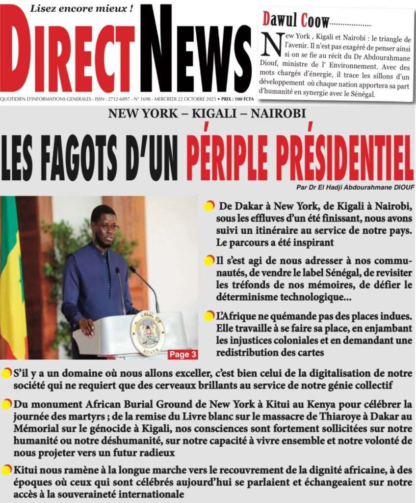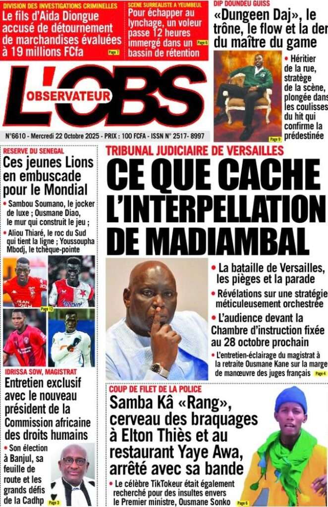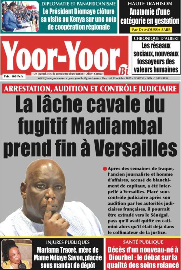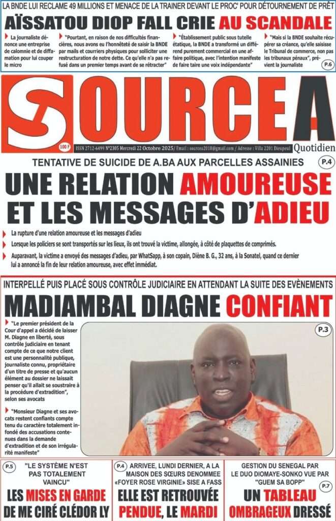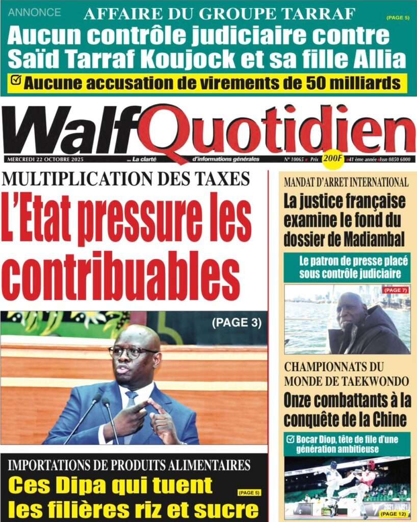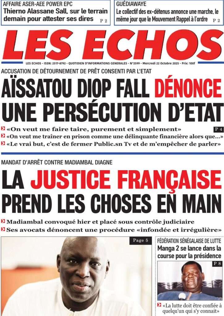 A la Une Actualité La Une Des Quotidiens – Mercredi 22 Octobre 2025 (Avec Ma Revue De Presse) Bour Sine octobre 22, 2025 0 Post navigation Previous: Paris : Madiambal libéré sous contrôle judiciaire suite à son interpellationNext: La Une Des Quotidiens – Jeudi 23 Octobre 2025 (Avec Ma Revue De Presse) More Stories A la Une Actualité Politique Ce que change la nouvelle loi électorale adoptée par les députés Bour Sine avril 28, 2026 0 A la Une Actualité Politique « Ensemble, nous sommes une force »Par Hamidou Thiaw, Président du MPR Bour Sine avril 28, 2026 0 A la Une Actualité Pape Malick Ndour envoyé en prison Bour Sine avril 28, 2026 0 Laisser un commentaire Annuler la réponseVotre adresse e-mail ne sera pas publiée. Les champs obligatoires sont indiqués avec *Commentaire * Nom * E-mail * Site web Enregistrer mon nom, mon e-mail et mon site dans le navigateur pour mon prochain commentaire.