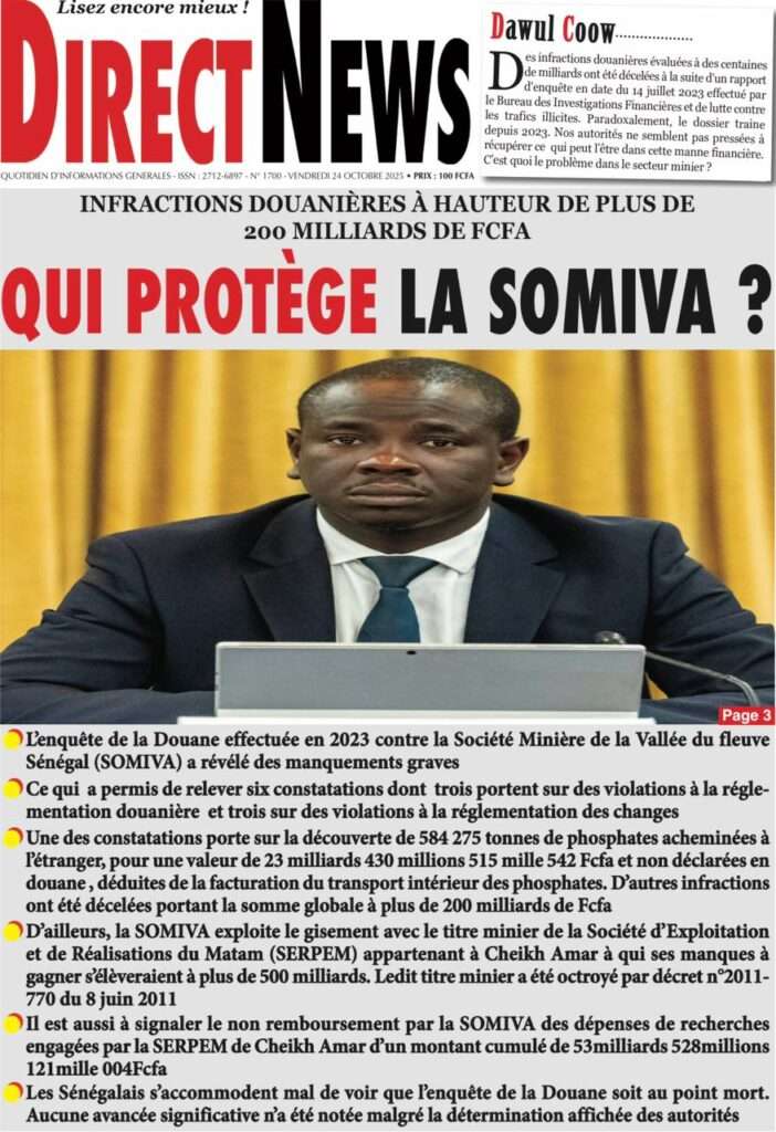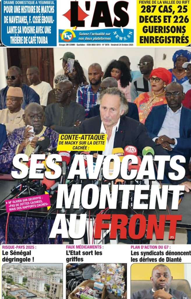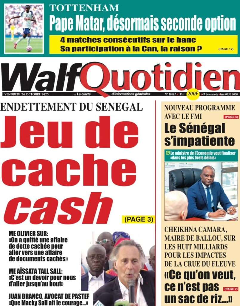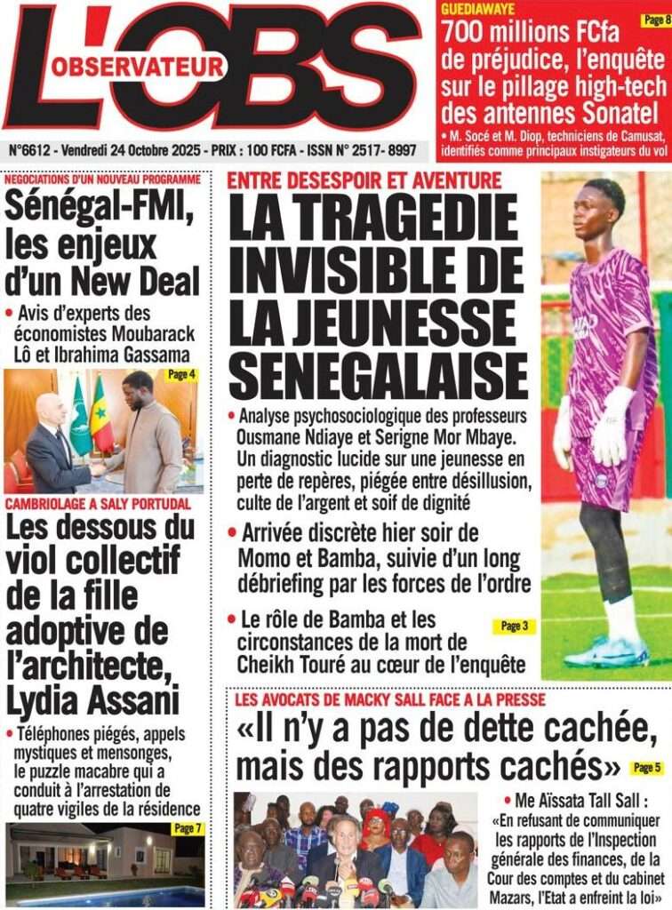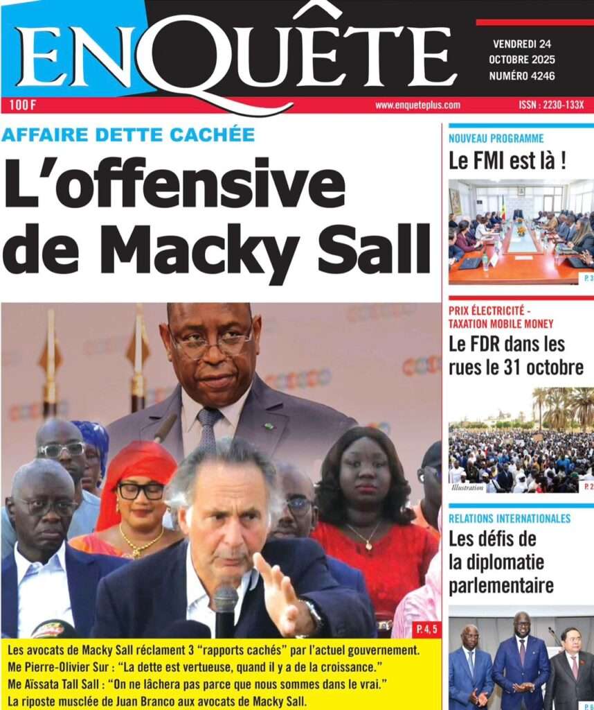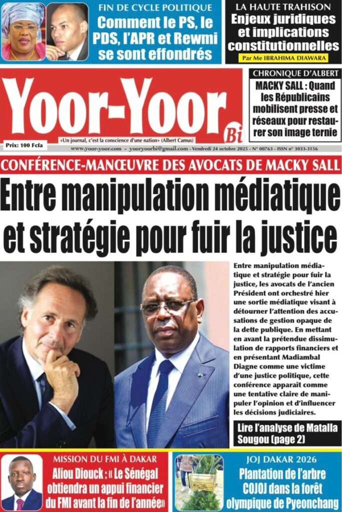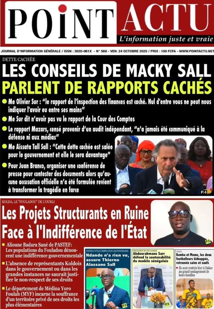 A la Une Actualité La Une Des Quotidiens – Jeudi 23 Octobre 2025 (Avec Ma Revue De Presse) Bour Sine octobre 24, 2025 0 Post navigation Previous: La Une Des Quotidiens – Mercredi 22 Octobre 2025 (Avec Ma Revue De Presse)Next: Dette réévaluée à 130%, Diomaye exige la maîtrise des prix, Plainte de Bougane et Cie… More Stories A la Une Actualité Politique Ce que change la nouvelle loi électorale adoptée par les députés Bour Sine avril 28, 2026 0 A la Une Actualité Politique « Ensemble, nous sommes une force »Par Hamidou Thiaw, Président du MPR Bour Sine avril 28, 2026 0 A la Une Actualité Pape Malick Ndour envoyé en prison Bour Sine avril 28, 2026 0 Laisser un commentaire Annuler la réponseVotre adresse e-mail ne sera pas publiée. Les champs obligatoires sont indiqués avec *Commentaire * Nom * E-mail * Site web Enregistrer mon nom, mon e-mail et mon site dans le navigateur pour mon prochain commentaire.