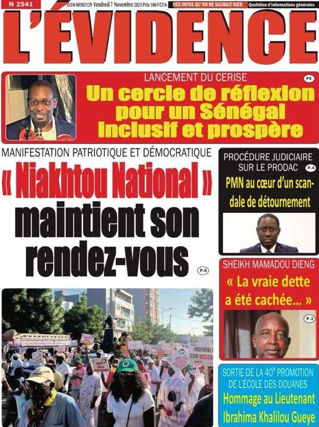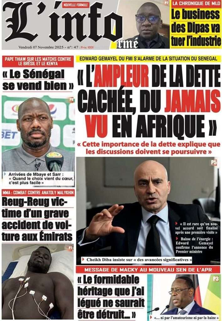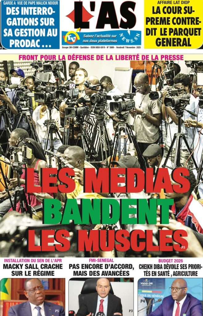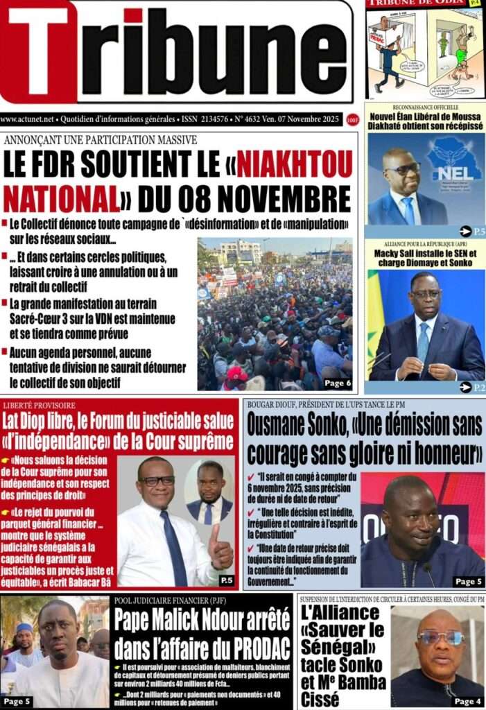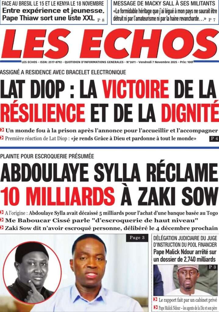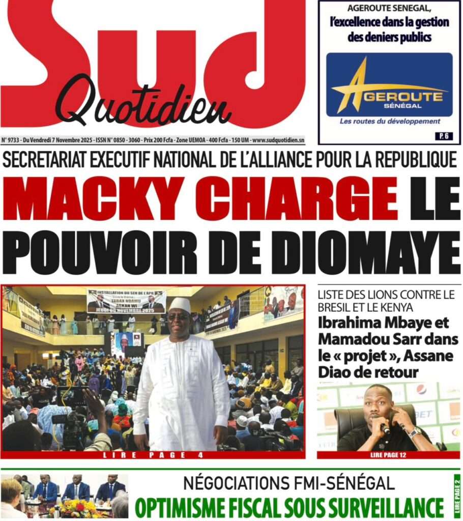 A la Une Actualité La Une Des Quotidiens – Vendredi 07 Novembre 2025 (Avec Ma Revue De Presse) Bour Sine novembre 7, 2025 0 Post navigation Previous: Pape Malick Ndour arrêté par des éléments de la DICNext: Sous-évaluation de la dette : quand le jeu politique prend le pas sur la vérité technique More Stories A la Une Actualité Politique Ce que change la nouvelle loi électorale adoptée par les députés Bour Sine avril 28, 2026 0 A la Une Actualité Politique « Ensemble, nous sommes une force »Par Hamidou Thiaw, Président du MPR Bour Sine avril 28, 2026 0 A la Une Actualité Pape Malick Ndour envoyé en prison Bour Sine avril 28, 2026 0 Laisser un commentaire Annuler la réponseVotre adresse e-mail ne sera pas publiée. Les champs obligatoires sont indiqués avec *Commentaire * Nom * E-mail * Site web Enregistrer mon nom, mon e-mail et mon site dans le navigateur pour mon prochain commentaire.
