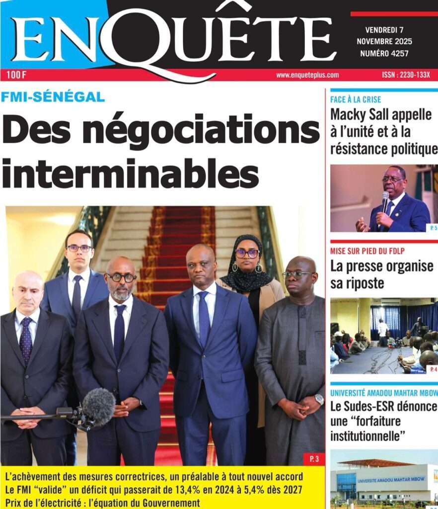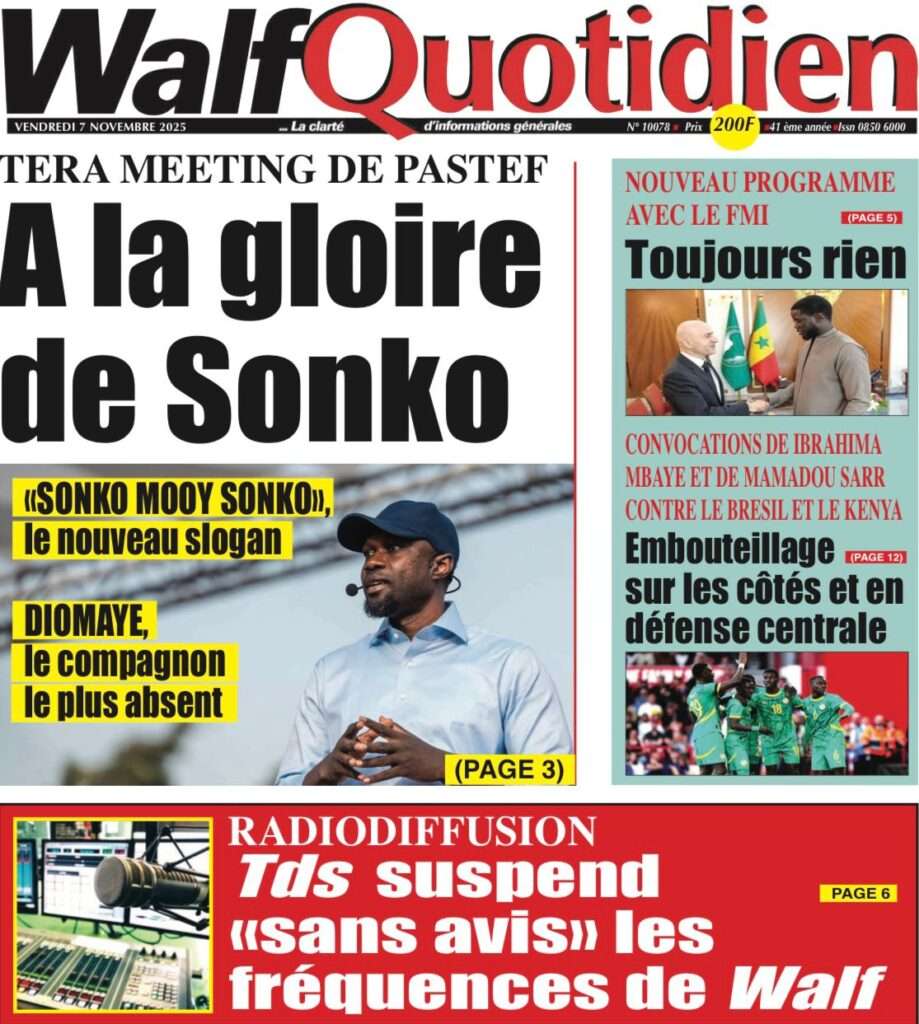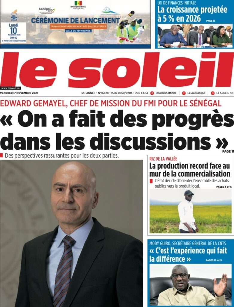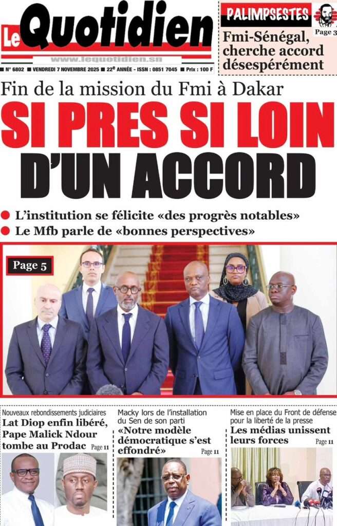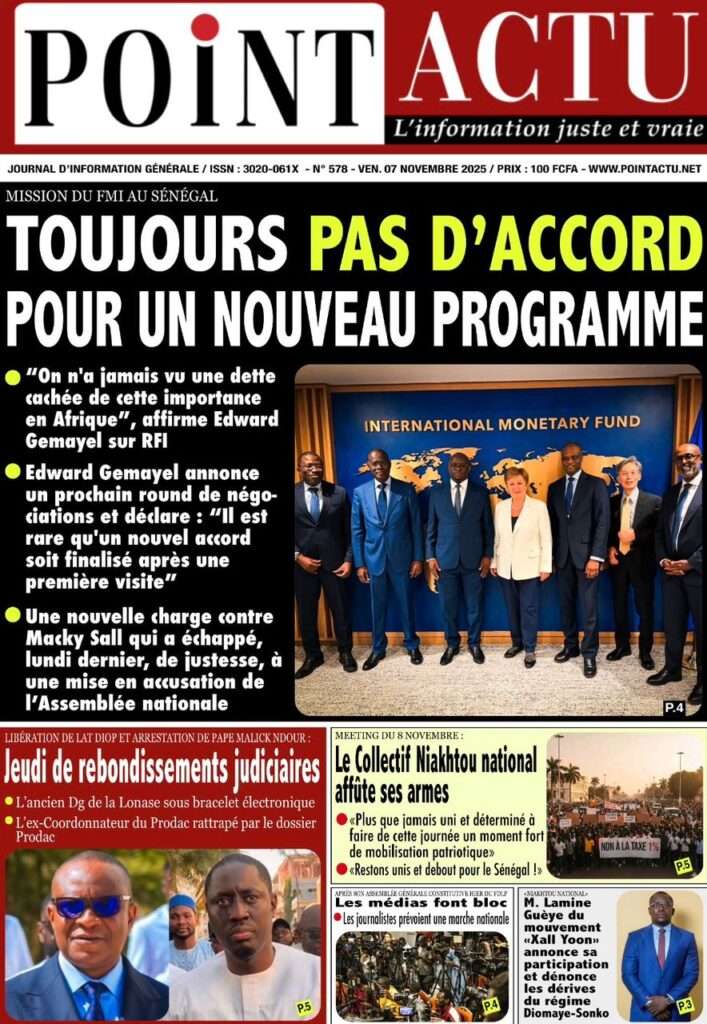 A la Une Actualité La Une Des Quotidiens – Vendredi 07 Novembre 2025 (Avec Ma Revue De Presse) Bour Sine novembre 7, 2025 0 Post navigation Previous: Pape Malick Ndour arrêté par des éléments de la DICNext: Sous-évaluation de la dette : quand le jeu politique prend le pas sur la vérité technique More Stories A la Une Actualité Politique Ce que change la nouvelle loi électorale adoptée par les députés Bour Sine avril 28, 2026 0 A la Une Actualité Politique « Ensemble, nous sommes une force »Par Hamidou Thiaw, Président du MPR Bour Sine avril 28, 2026 0 A la Une Actualité Pape Malick Ndour envoyé en prison Bour Sine avril 28, 2026 0 Laisser un commentaire Annuler la réponseVotre adresse e-mail ne sera pas publiée. Les champs obligatoires sont indiqués avec *Commentaire * Nom * E-mail * Site web Enregistrer mon nom, mon e-mail et mon site dans le navigateur pour mon prochain commentaire.