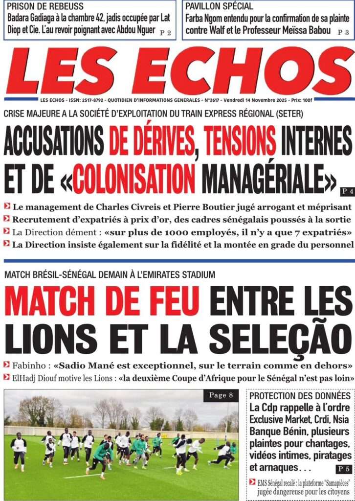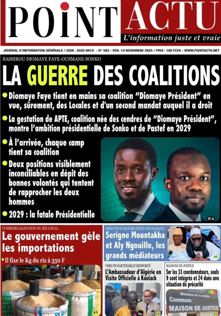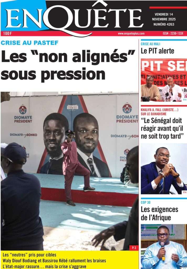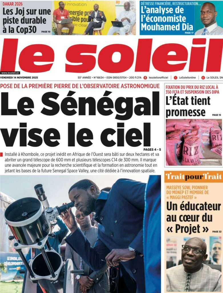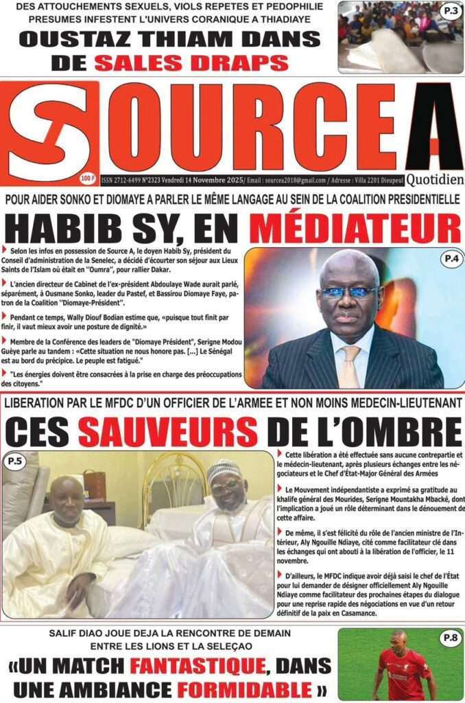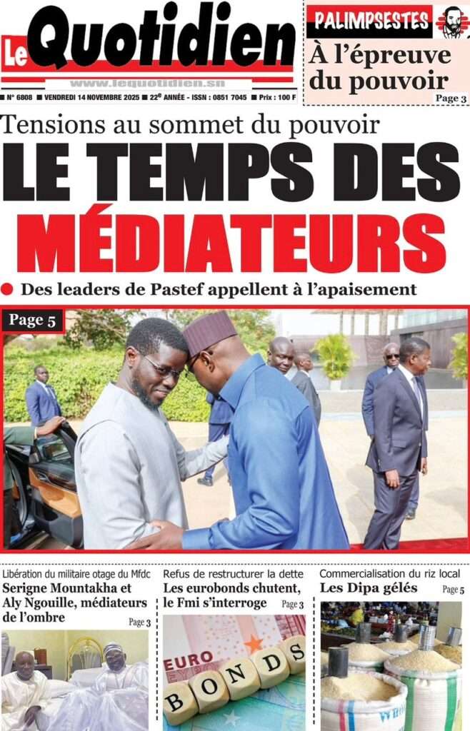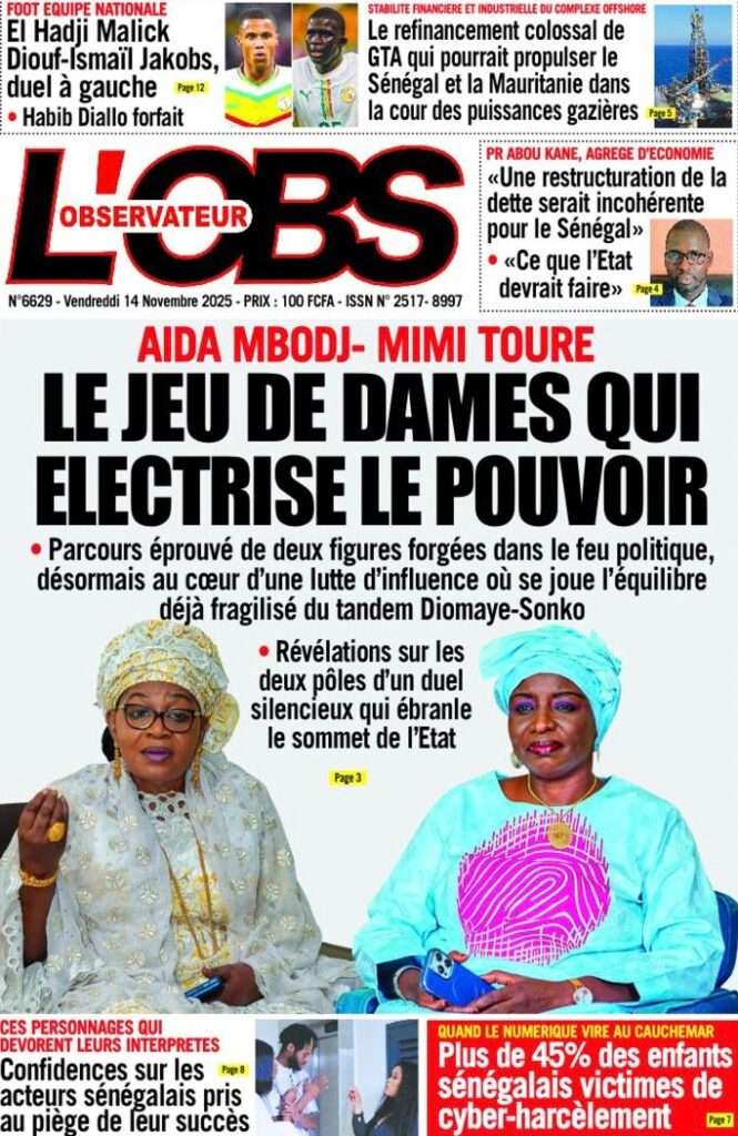 A la Une Actualité La Une Des Quotidiens – Vendredi 14 Novembre 2025 (Avec Ma Revue De Presse) Bour Sine novembre 14, 2025 0 Post navigation Previous: Coalition Diomaye Président : les mises au point du président Bassirou Diomaye Faye face à la polémiqueNext: Ousmane, je te l’avais dit, mais tu t’es entêté par orgueil, par jalousie et par méchanceté More Stories A la Une Actualité Politique Ce que change la nouvelle loi électorale adoptée par les députés Bour Sine avril 28, 2026 0 A la Une Actualité Politique « Ensemble, nous sommes une force »Par Hamidou Thiaw, Président du MPR Bour Sine avril 28, 2026 0 A la Une Actualité Pape Malick Ndour envoyé en prison Bour Sine avril 28, 2026 0 Laisser un commentaire Annuler la réponseVotre adresse e-mail ne sera pas publiée. Les champs obligatoires sont indiqués avec *Commentaire * Nom * E-mail * Site web Enregistrer mon nom, mon e-mail et mon site dans le navigateur pour mon prochain commentaire.