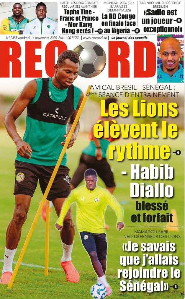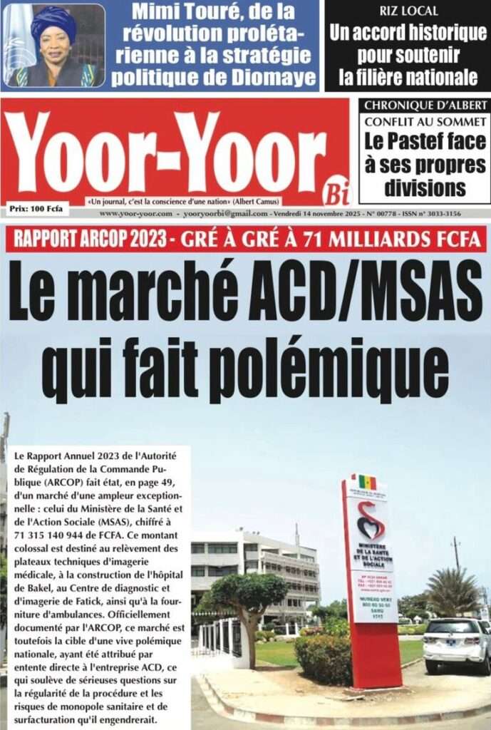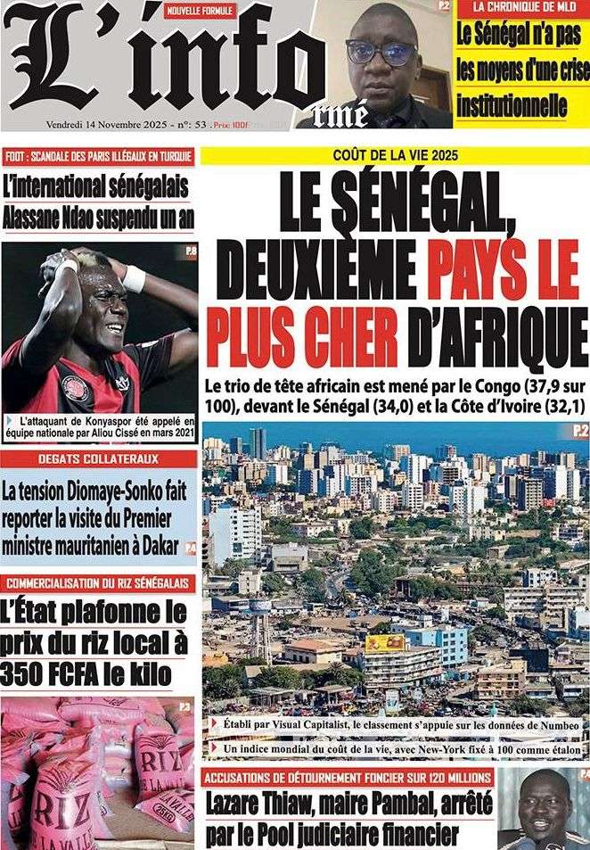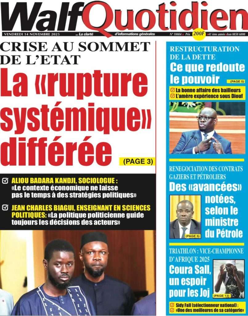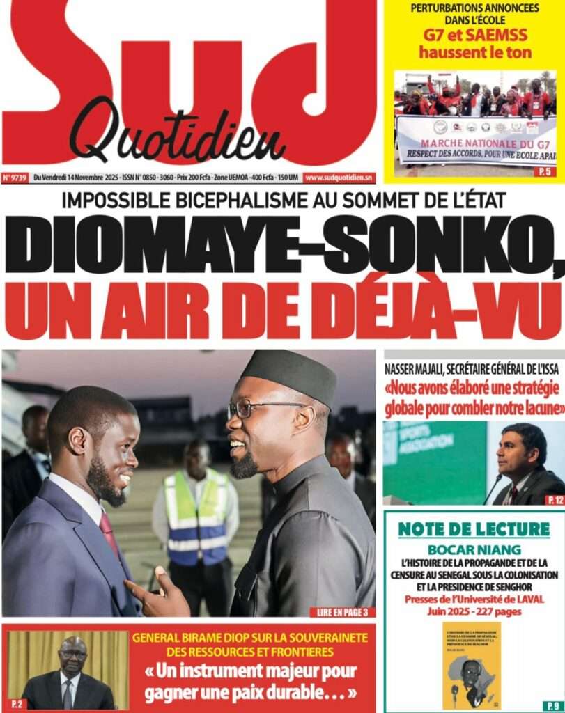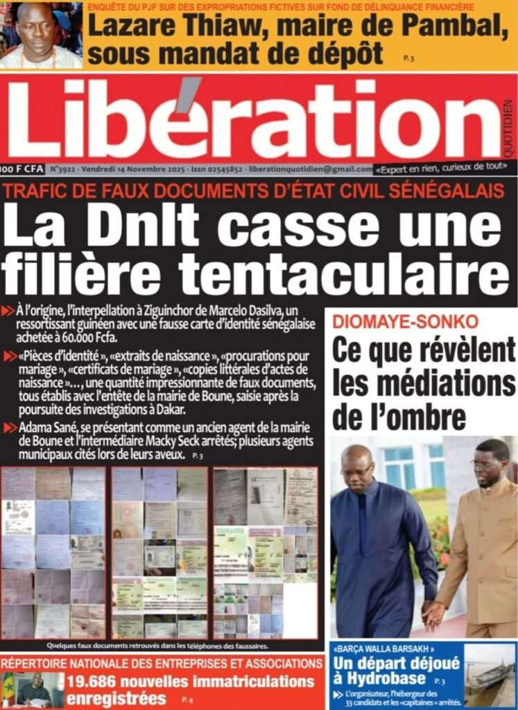 A la Une Actualité La Une Des Quotidiens – Vendredi 14 Novembre 2025 (Avec Ma Revue De Presse) Bour Sine novembre 14, 2025 0 Post navigation Previous: Coalition Diomaye Président : les mises au point du président Bassirou Diomaye Faye face à la polémiqueNext: Ousmane, je te l’avais dit, mais tu t’es entêté par orgueil, par jalousie et par méchanceté More Stories A la Une Actualité Politique Ce que change la nouvelle loi électorale adoptée par les députés Bour Sine avril 28, 2026 0 A la Une Actualité Politique « Ensemble, nous sommes une force »Par Hamidou Thiaw, Président du MPR Bour Sine avril 28, 2026 0 A la Une Actualité Pape Malick Ndour envoyé en prison Bour Sine avril 28, 2026 0 Laisser un commentaire Annuler la réponseVotre adresse e-mail ne sera pas publiée. Les champs obligatoires sont indiqués avec *Commentaire * Nom * E-mail * Site web Enregistrer mon nom, mon e-mail et mon site dans le navigateur pour mon prochain commentaire.