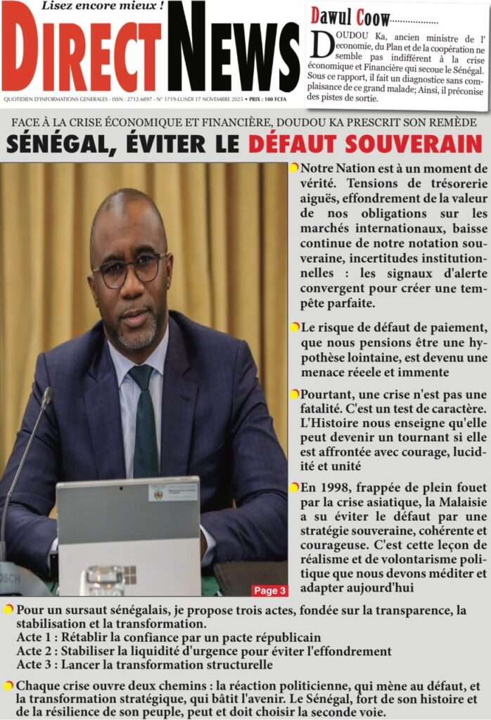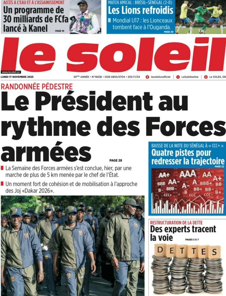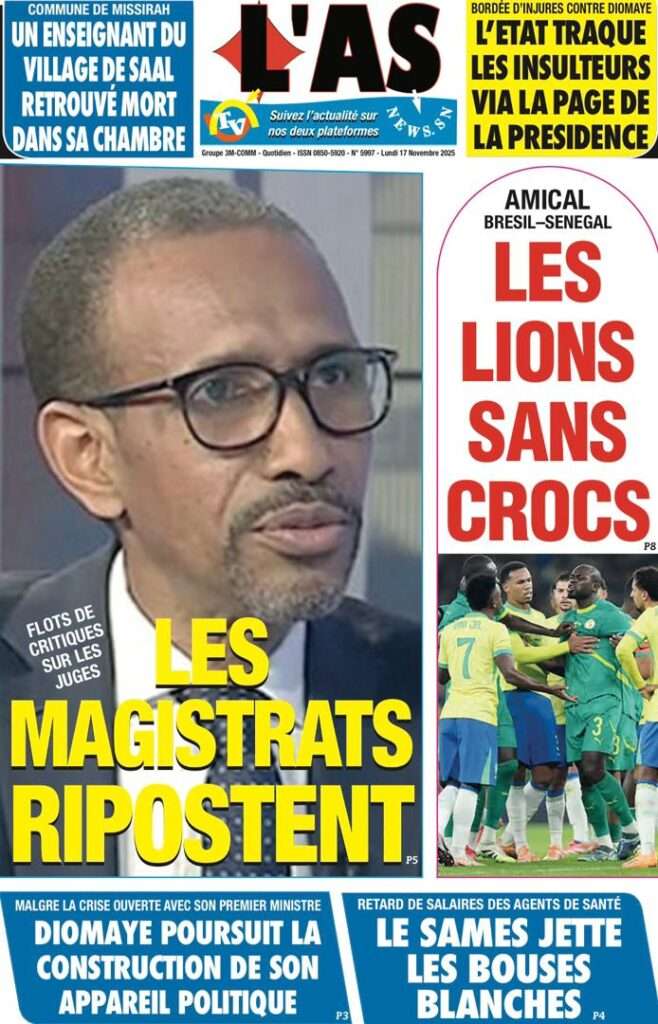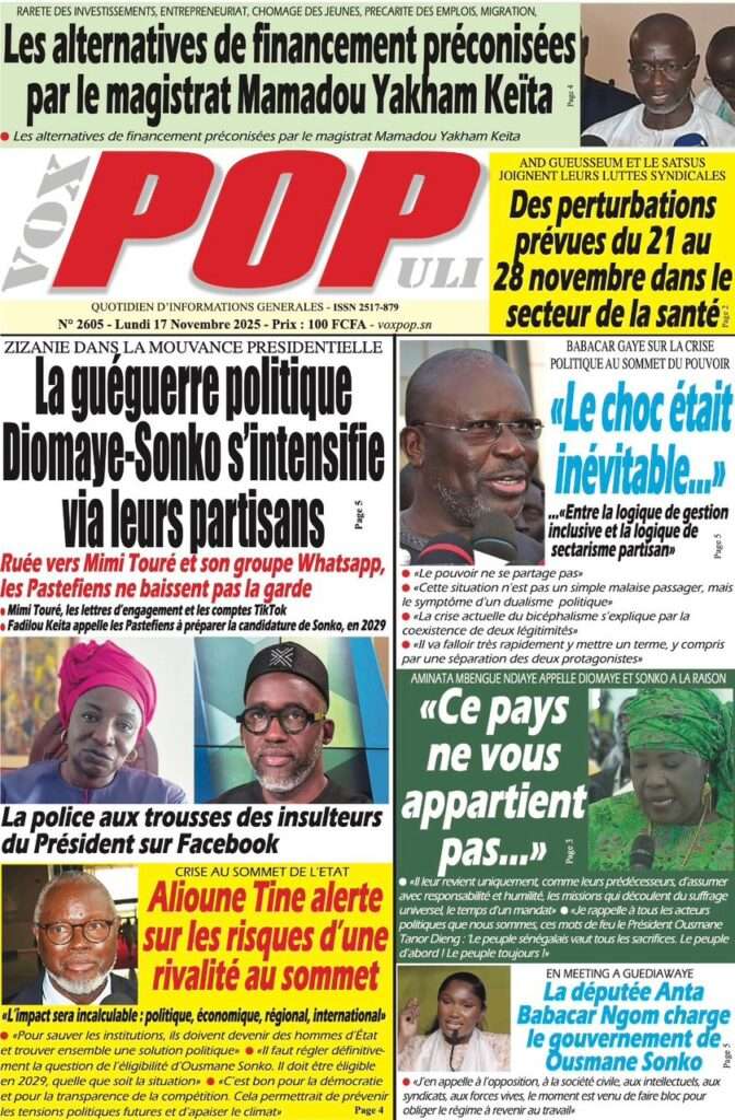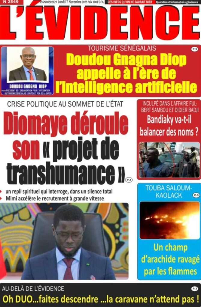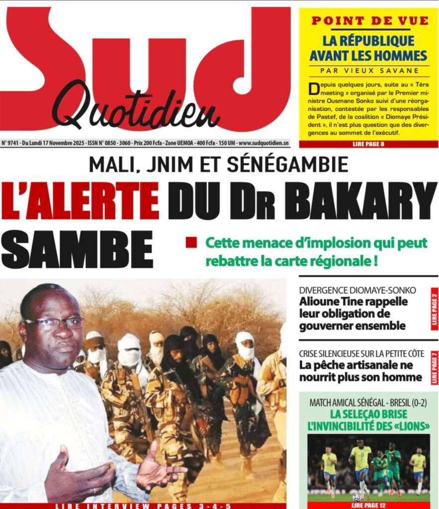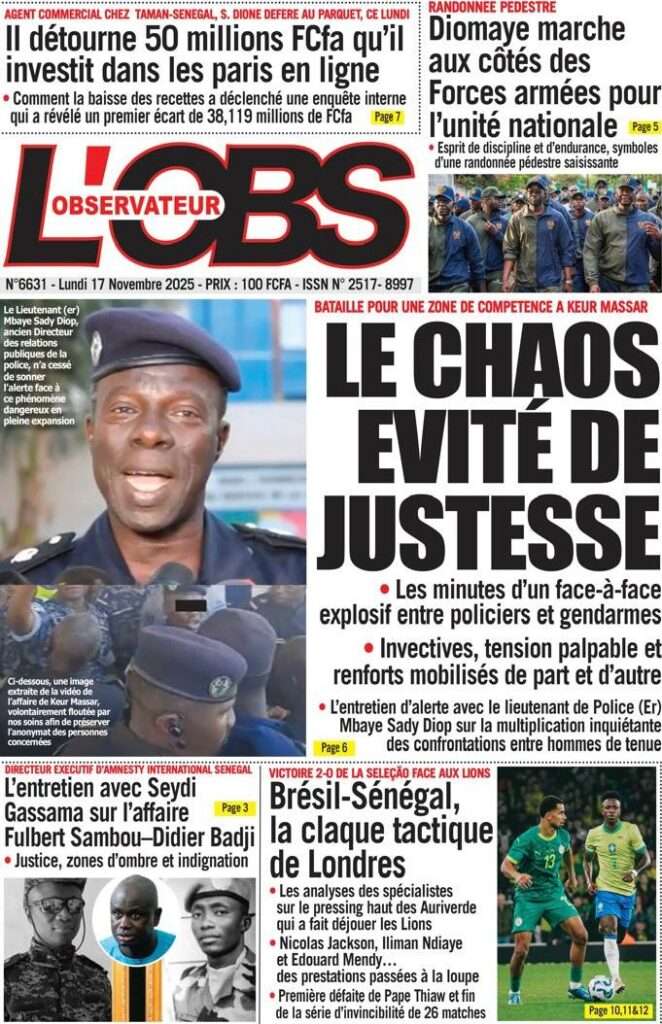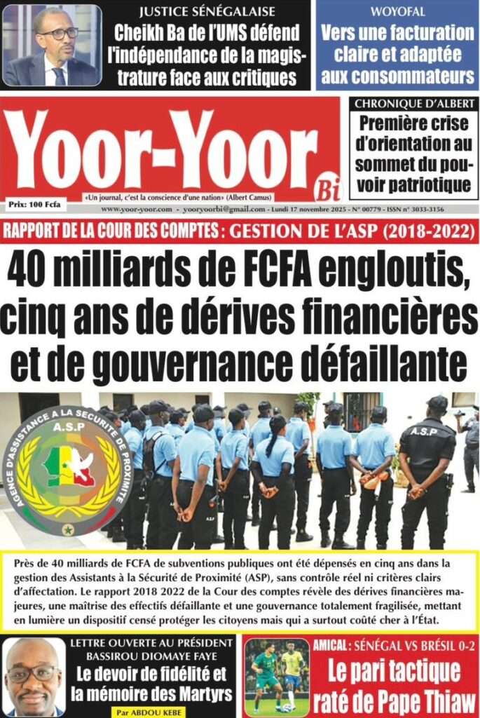 A la Une Actualité La Une Des Quotidiens – Lundi 17 Novembre 2025 (Avec Ma Revue De Presse) Bour Sine novembre 17, 2025 0 Post navigation Previous: 81e anniversaire du massacre de Thiaroye : Le Gouvernement installe le Comité de commémorationNext: Disparition de Fulbert Sambou et Didier Badji : l’inculpation qui n’éteint pas la demande de vérité More Stories A la Une Actualité Politique Ce que change la nouvelle loi électorale adoptée par les députés Bour Sine avril 28, 2026 0 A la Une Actualité Politique « Ensemble, nous sommes une force »Par Hamidou Thiaw, Président du MPR Bour Sine avril 28, 2026 0 A la Une Actualité Pape Malick Ndour envoyé en prison Bour Sine avril 28, 2026 0 Laisser un commentaire Annuler la réponseVotre adresse e-mail ne sera pas publiée. Les champs obligatoires sont indiqués avec *Commentaire * Nom * E-mail * Site web Enregistrer mon nom, mon e-mail et mon site dans le navigateur pour mon prochain commentaire.