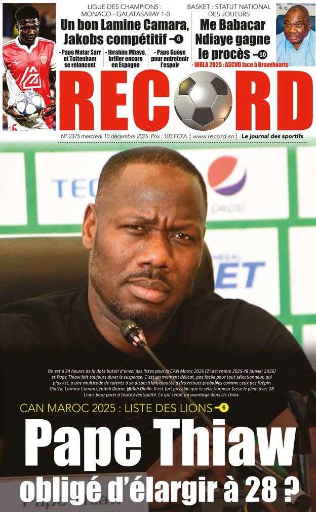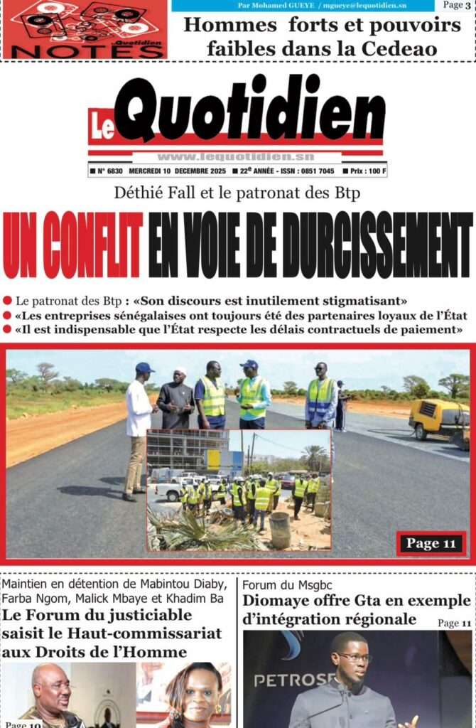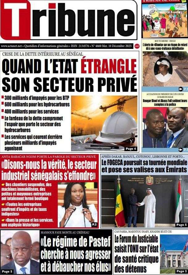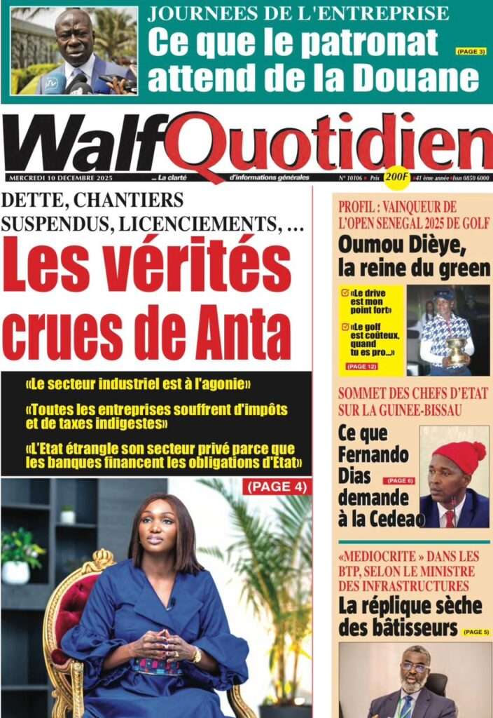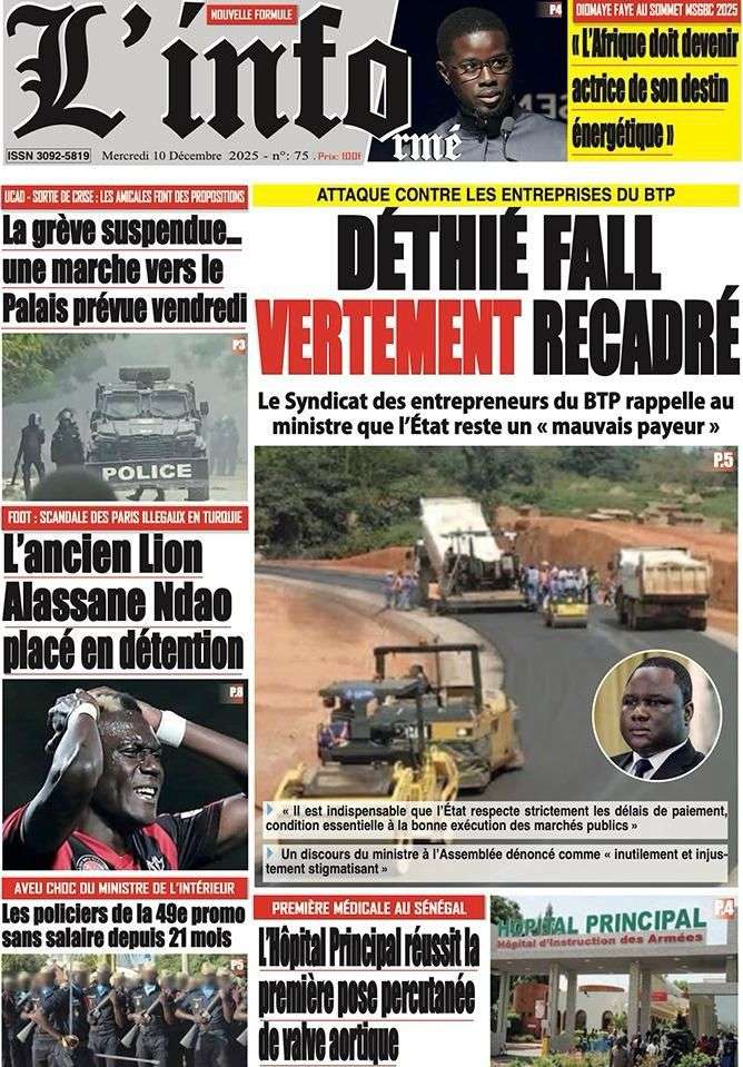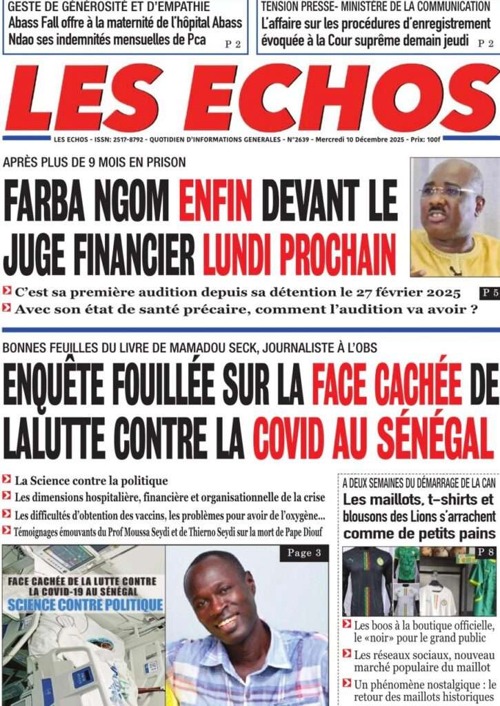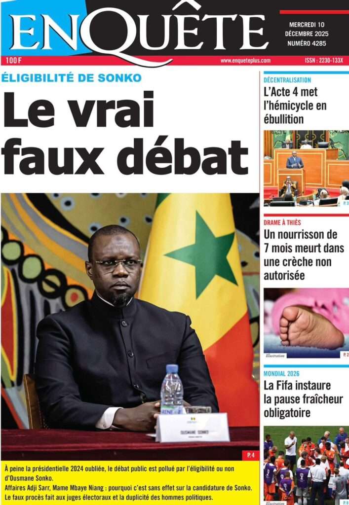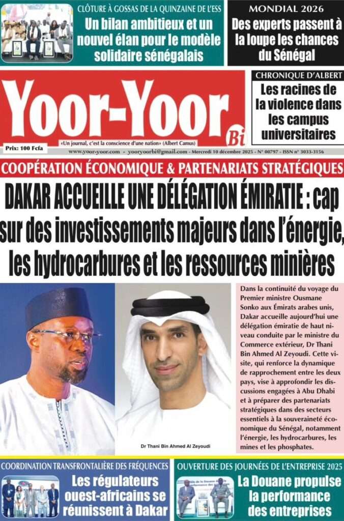 A la Une Actualité La Une Des Quotidiens – Mercredi 10 Décembre 2025 (Avec Ma Revue De Presse) Bour Sine décembre 10, 2025 0 Post navigation Previous: Nommé CEMGA en remplacement de Mbaye Cissé, Oumar Wade, 1er marin à commander les ArméesNext: Thierno LÔ félicite Mankeur Ndiaye pour sa « très belle intervention » au colloque de Sciences Po More Stories A la Une Actualité Politique Ce que change la nouvelle loi électorale adoptée par les députés Bour Sine avril 28, 2026 0 A la Une Actualité Politique « Ensemble, nous sommes une force »Par Hamidou Thiaw, Président du MPR Bour Sine avril 28, 2026 0 A la Une Actualité Pape Malick Ndour envoyé en prison Bour Sine avril 28, 2026 0 Laisser un commentaire Annuler la réponseVotre adresse e-mail ne sera pas publiée. Les champs obligatoires sont indiqués avec *Commentaire * Nom * E-mail * Site web Enregistrer mon nom, mon e-mail et mon site dans le navigateur pour mon prochain commentaire.