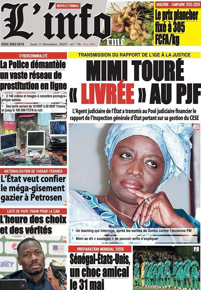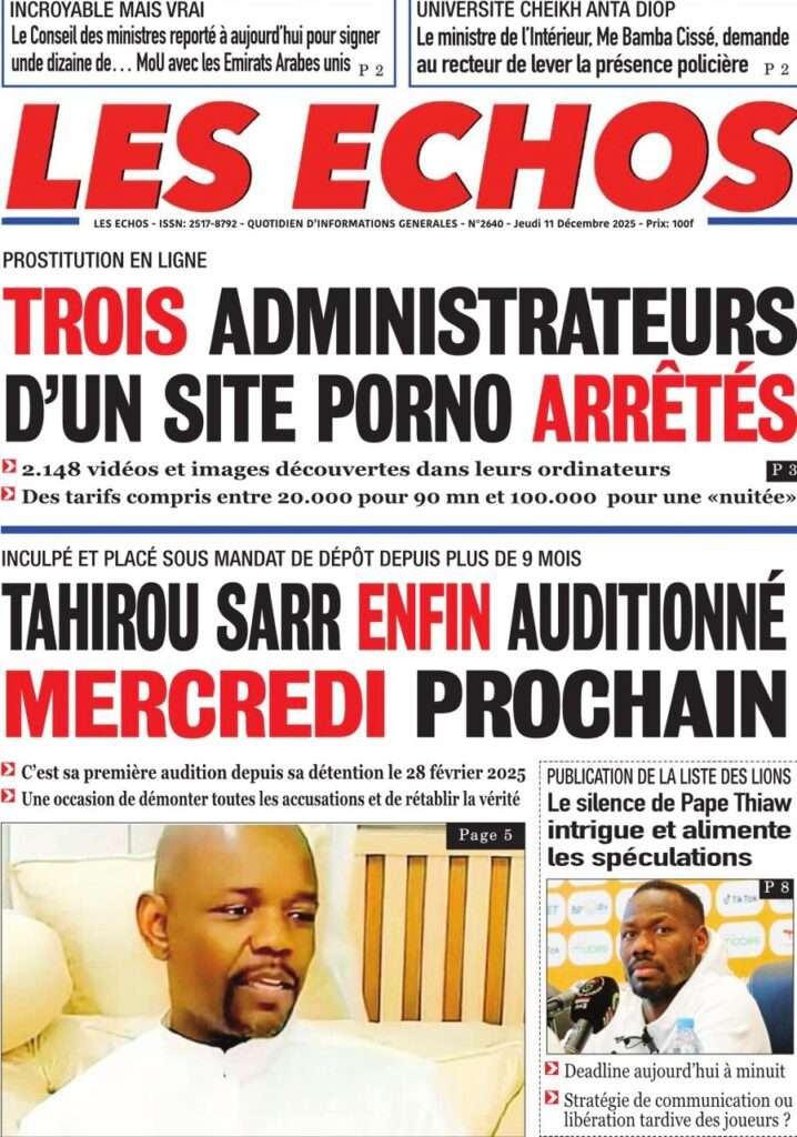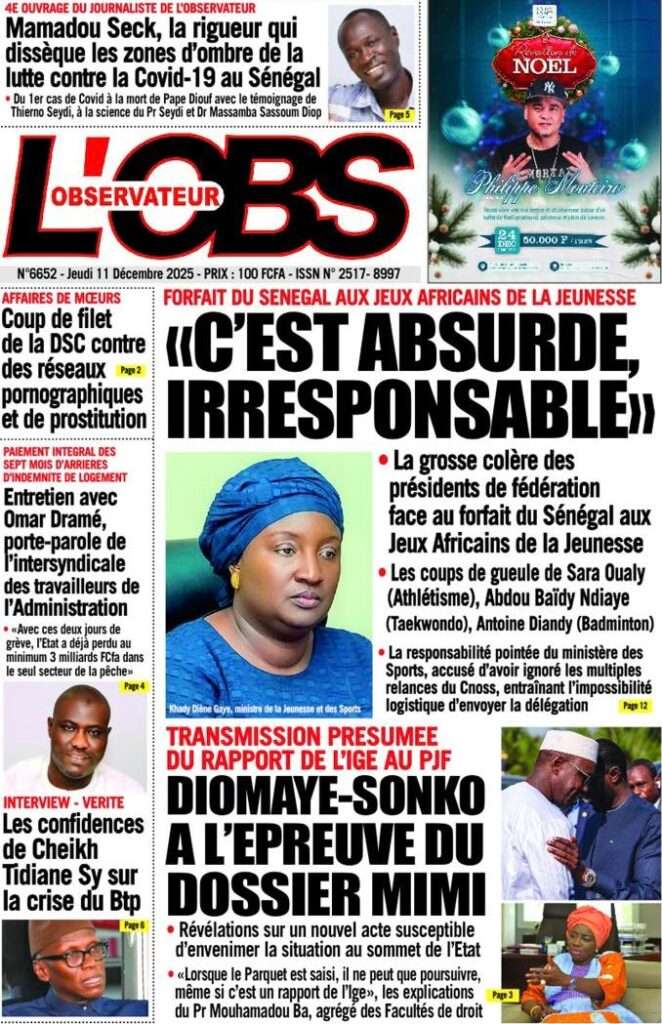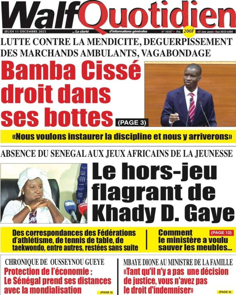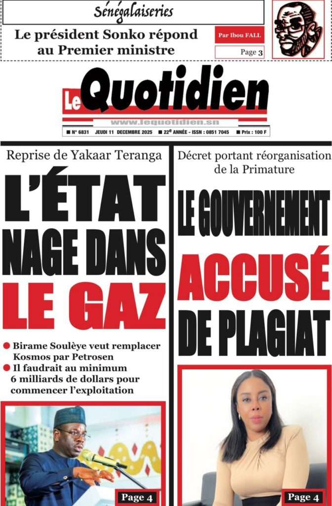 A la Une Actualité La Une Des Quotidiens – Jeudi 11 Décembre 2025 (Avec Ma Revue De Presse) Bour Sine décembre 11, 2025 0 Post navigation Previous: Les Chroniques du Doyen – Hommage au Général Mbaye Cissé : Un modèle de leadership et d’humanisme (Par Majib Sène)Next: Les Chroniques du Doyen – Macky Sall, descendant des guerriers kolyabés (Par Majib Sène) More Stories A la Une Actualité Politique Ce que change la nouvelle loi électorale adoptée par les députés Bour Sine avril 28, 2026 0 A la Une Actualité Politique « Ensemble, nous sommes une force »Par Hamidou Thiaw, Président du MPR Bour Sine avril 28, 2026 0 A la Une Actualité Pape Malick Ndour envoyé en prison Bour Sine avril 28, 2026 0 Laisser un commentaire Annuler la réponseVotre adresse e-mail ne sera pas publiée. Les champs obligatoires sont indiqués avec *Commentaire * Nom * E-mail * Site web Enregistrer mon nom, mon e-mail et mon site dans le navigateur pour mon prochain commentaire.