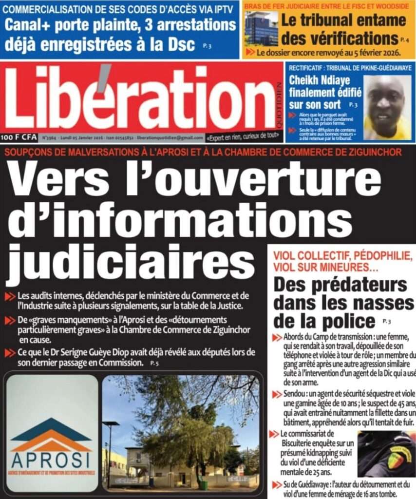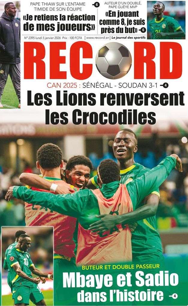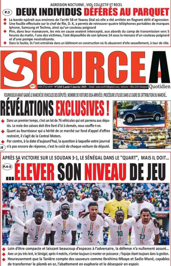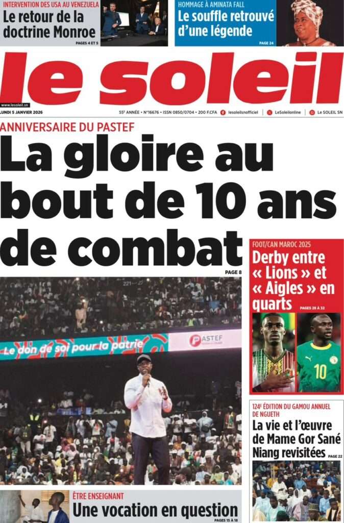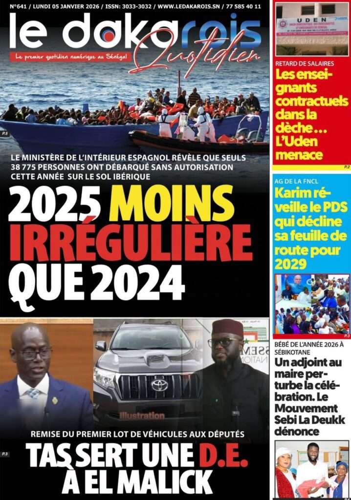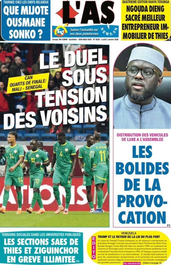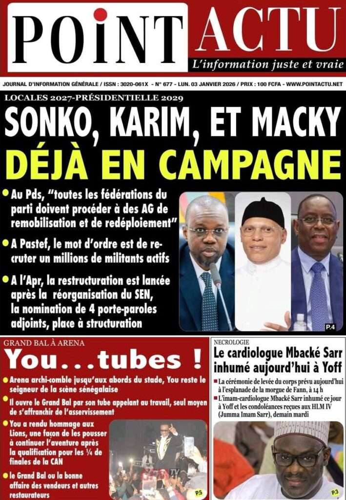 A la Une Actualité La Une Des Quotidiens – Lundi 05 Janvier 2026 (Avec Ma Revue De Presse) Bour Sine janvier 5, 2026 0 Post navigation Previous: Réformes administratives : le problème n’est pas le système, mais l’autoritéNext: Quand la puissance humilie les peuples et enterre le droit international More Stories A la Une Actualité Politique Ce que change la nouvelle loi électorale adoptée par les députés Bour Sine avril 28, 2026 0 A la Une Actualité Politique « Ensemble, nous sommes une force »Par Hamidou Thiaw, Président du MPR Bour Sine avril 28, 2026 0 A la Une Actualité Pape Malick Ndour envoyé en prison Bour Sine avril 28, 2026 0 Laisser un commentaire Annuler la réponseVotre adresse e-mail ne sera pas publiée. Les champs obligatoires sont indiqués avec *Commentaire * Nom * E-mail * Site web Enregistrer mon nom, mon e-mail et mon site dans le navigateur pour mon prochain commentaire.