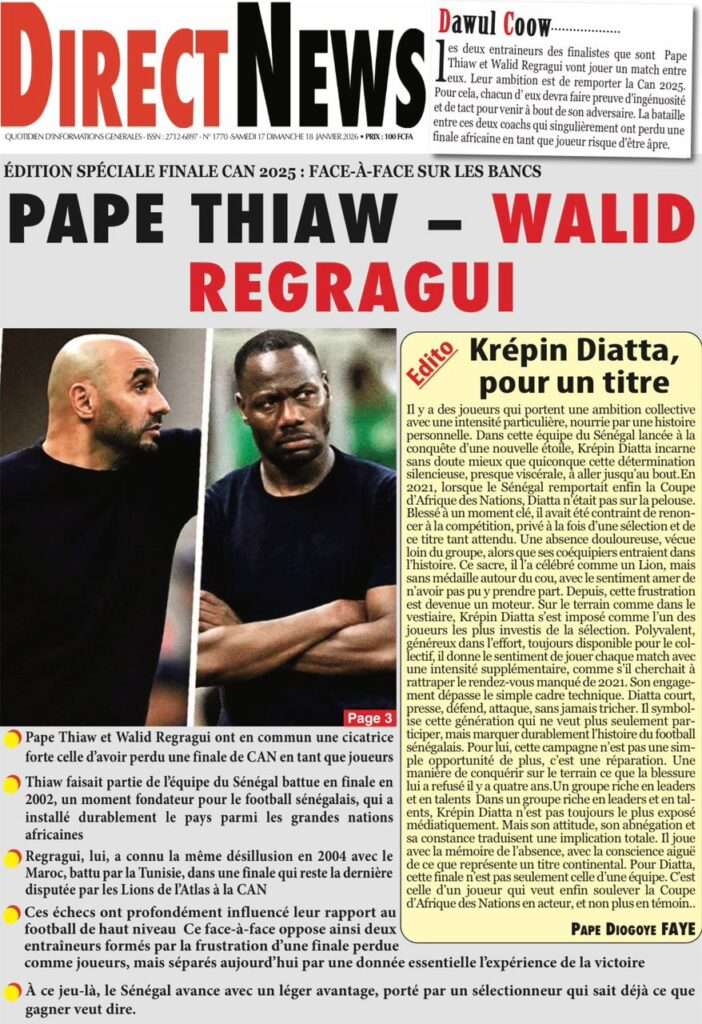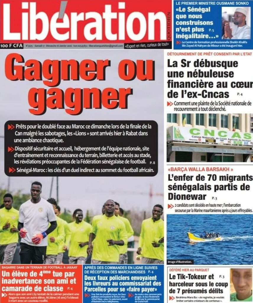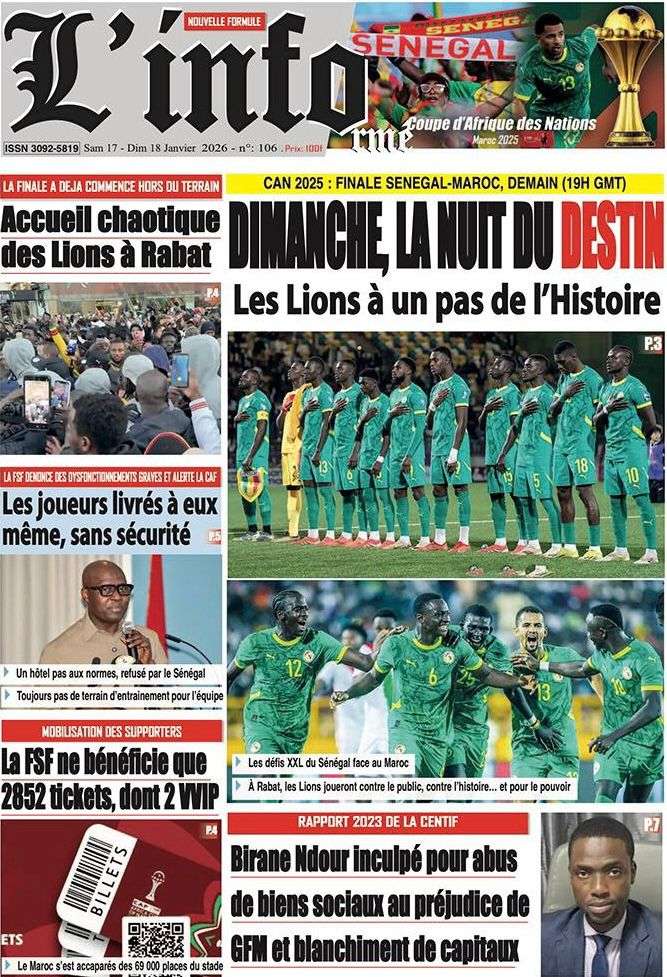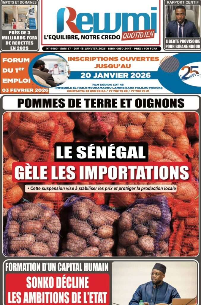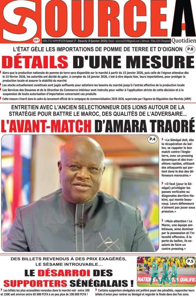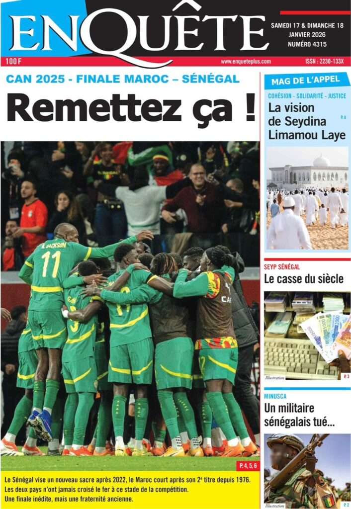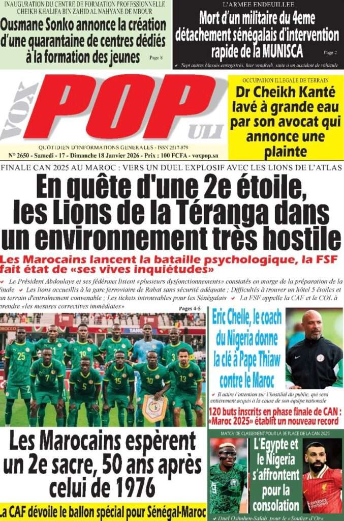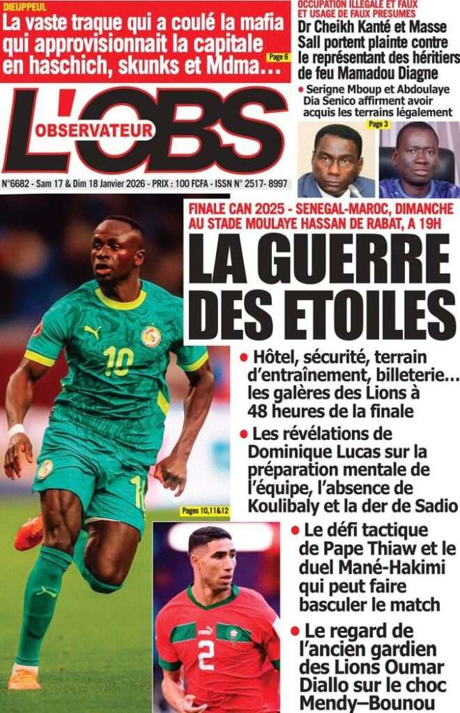 A la Une Actualité La Une Des Quotidiens – Samedi 17 Janvier 2026 (Avec Ma Revue De Presse) Bour Sine janvier 17, 2026 0 Post navigation Previous: La métamorphose du pouvoir : du projet du peuple à son reniementNext: Sénégal-Émirats : un centre de formation inauguré à Mbour pour forger la jeunesse de demain More Stories A la Une Actualité Politique Ce que change la nouvelle loi électorale adoptée par les députés Bour Sine avril 28, 2026 0 A la Une Actualité Politique « Ensemble, nous sommes une force »Par Hamidou Thiaw, Président du MPR Bour Sine avril 28, 2026 0 A la Une Actualité Pape Malick Ndour envoyé en prison Bour Sine avril 28, 2026 0 Laisser un commentaire Annuler la réponseVotre adresse e-mail ne sera pas publiée. Les champs obligatoires sont indiqués avec *Commentaire * Nom * E-mail * Site web Enregistrer mon nom, mon e-mail et mon site dans le navigateur pour mon prochain commentaire.