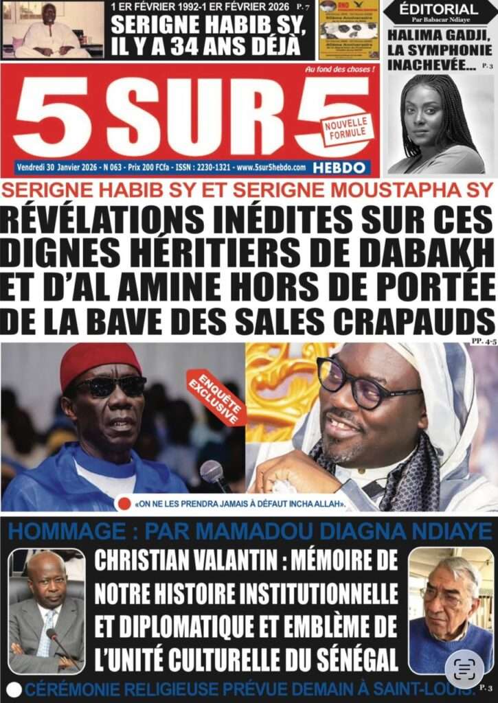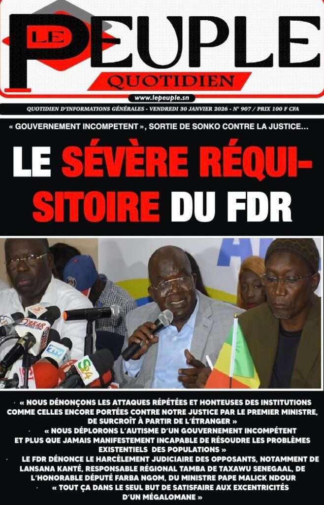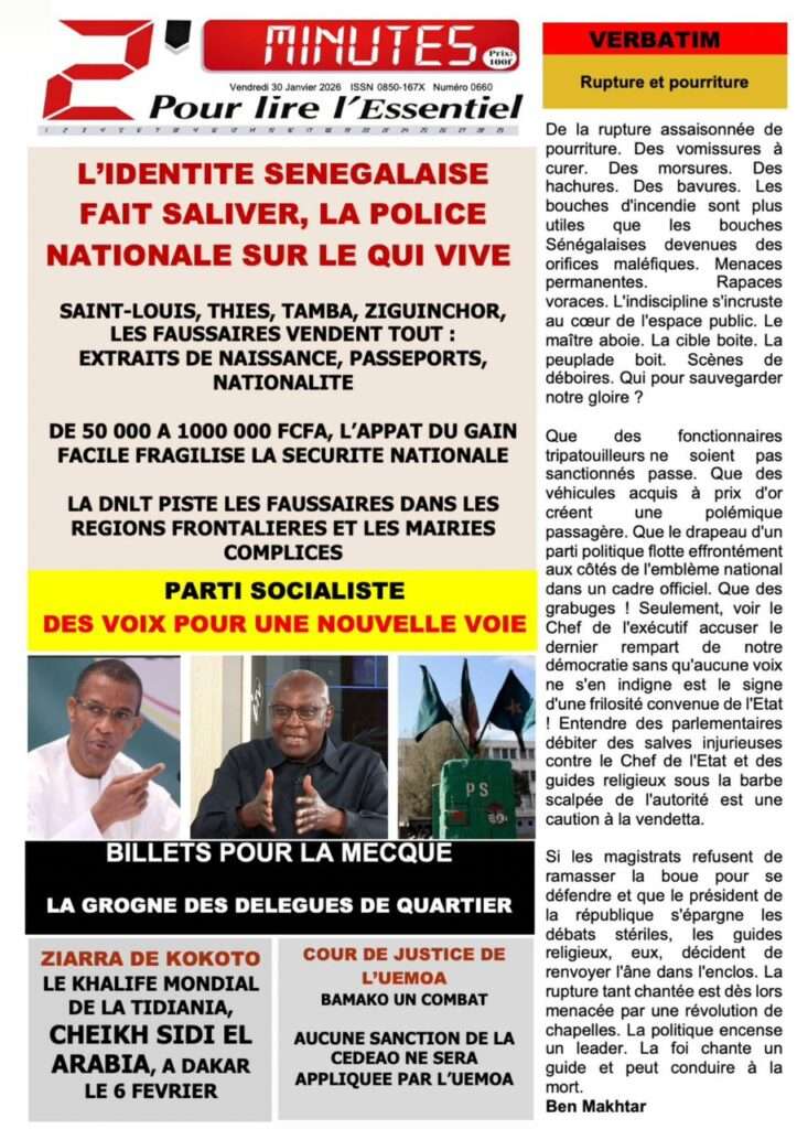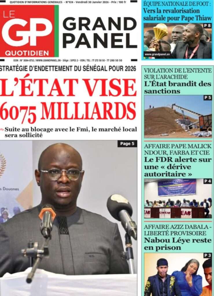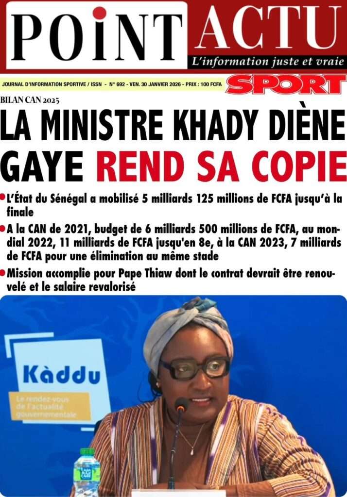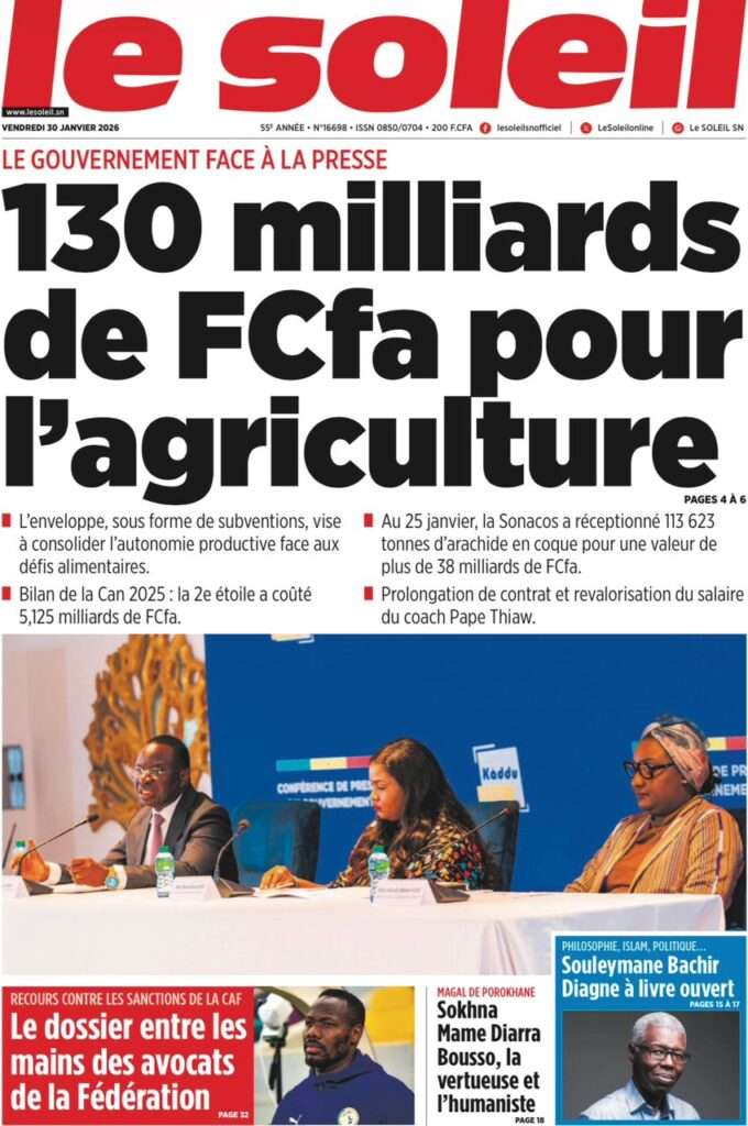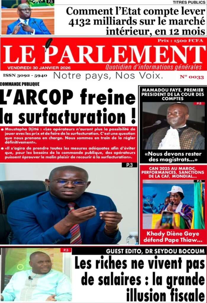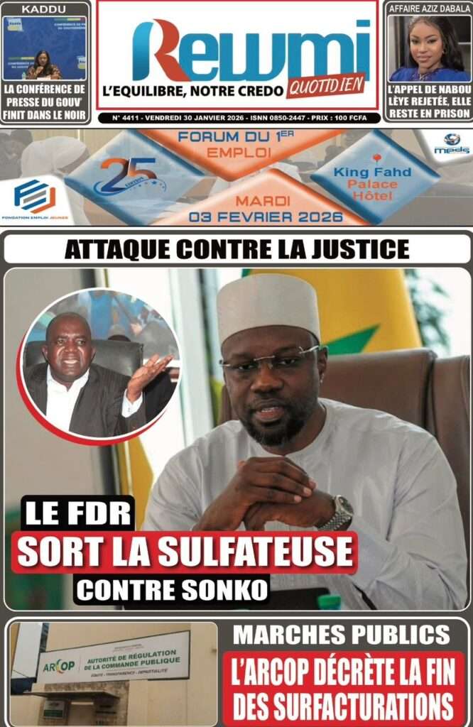 A la Une Actualité La Une Des Quotidiens – Vendredi 30 Janvier 2026 (Avec Ma Revue De Presse) Bour Sine janvier 30, 2026 0 Post navigation Previous: ÉPHÉMÉRIDES DU 29 JANVIERNext: Madiambal Diagne fait l’objet d’une plainte de son fils Mouhamed Diagne More Stories A la Une Actualité Politique Ce que change la nouvelle loi électorale adoptée par les députés Bour Sine avril 28, 2026 0 A la Une Actualité Politique « Ensemble, nous sommes une force »Par Hamidou Thiaw, Président du MPR Bour Sine avril 28, 2026 0 A la Une Actualité Pape Malick Ndour envoyé en prison Bour Sine avril 28, 2026 0 Laisser un commentaire Annuler la réponseVotre adresse e-mail ne sera pas publiée. Les champs obligatoires sont indiqués avec *Commentaire * Nom * E-mail * Site web Enregistrer mon nom, mon e-mail et mon site dans le navigateur pour mon prochain commentaire.