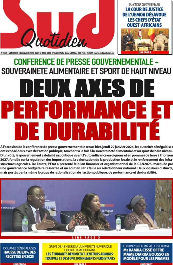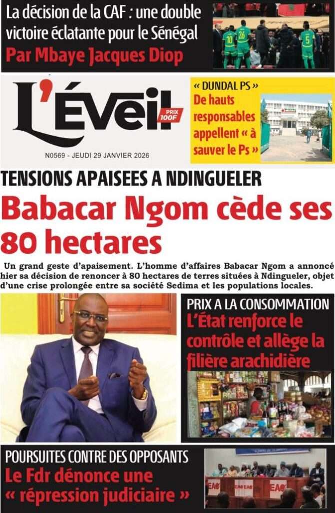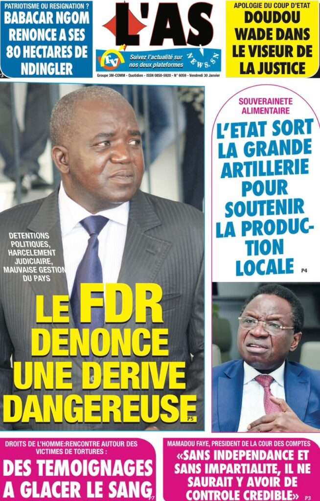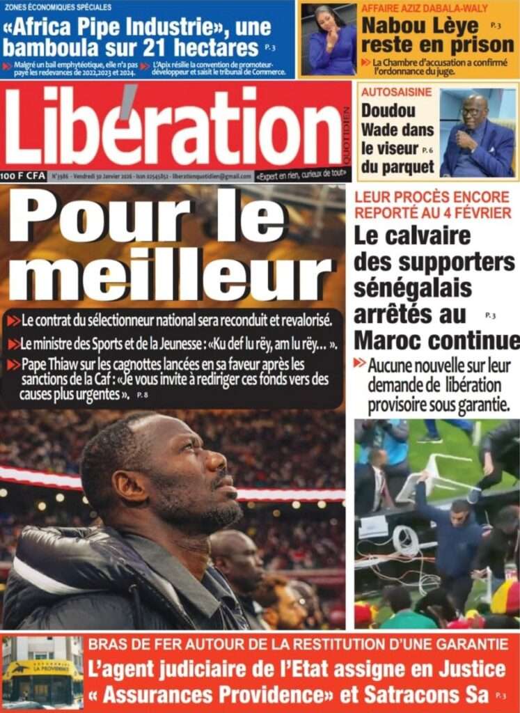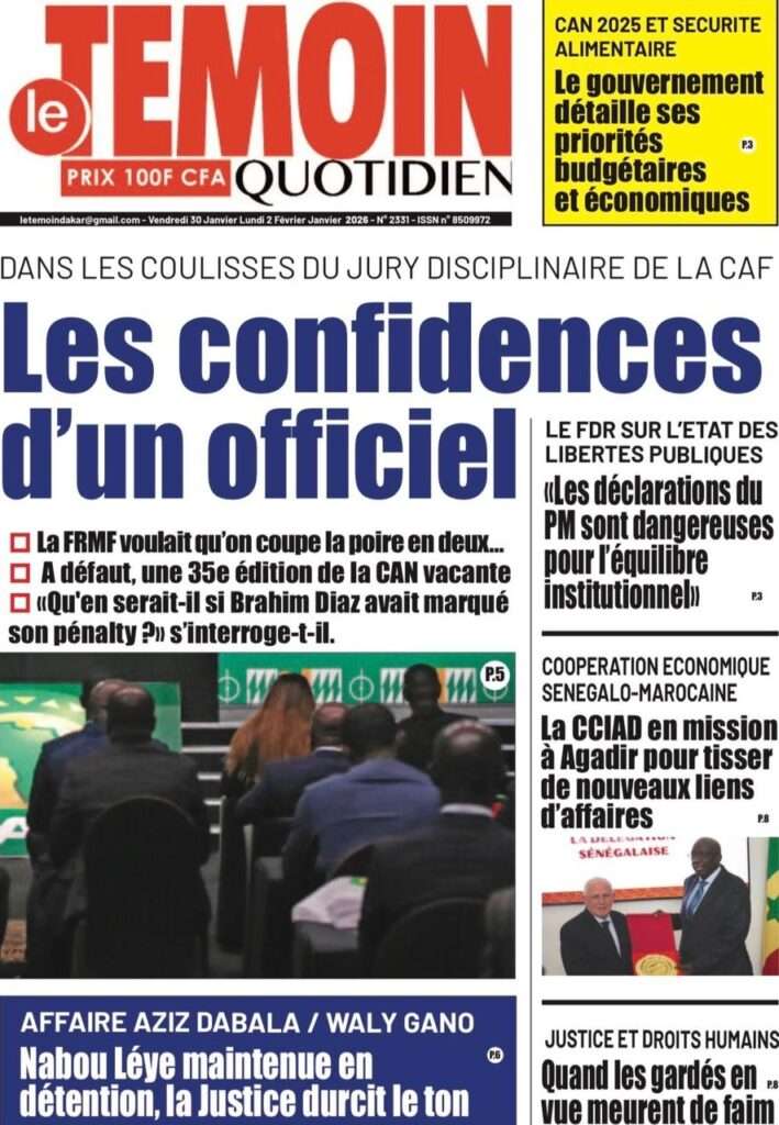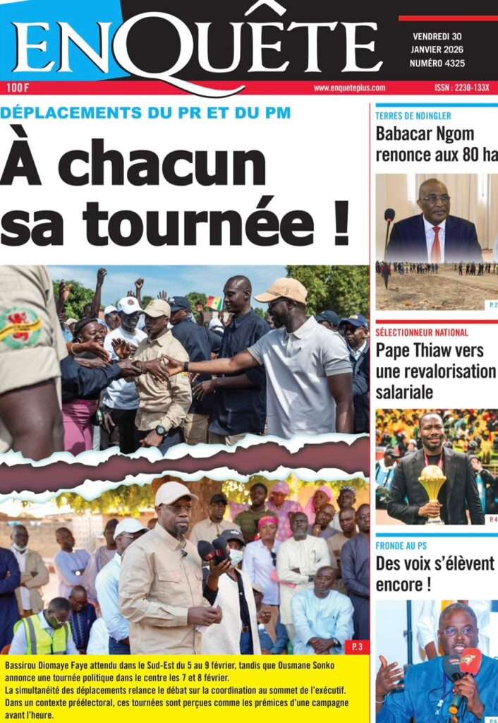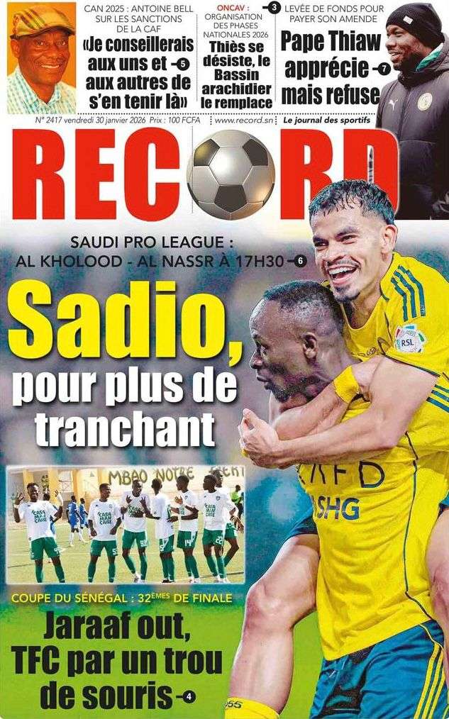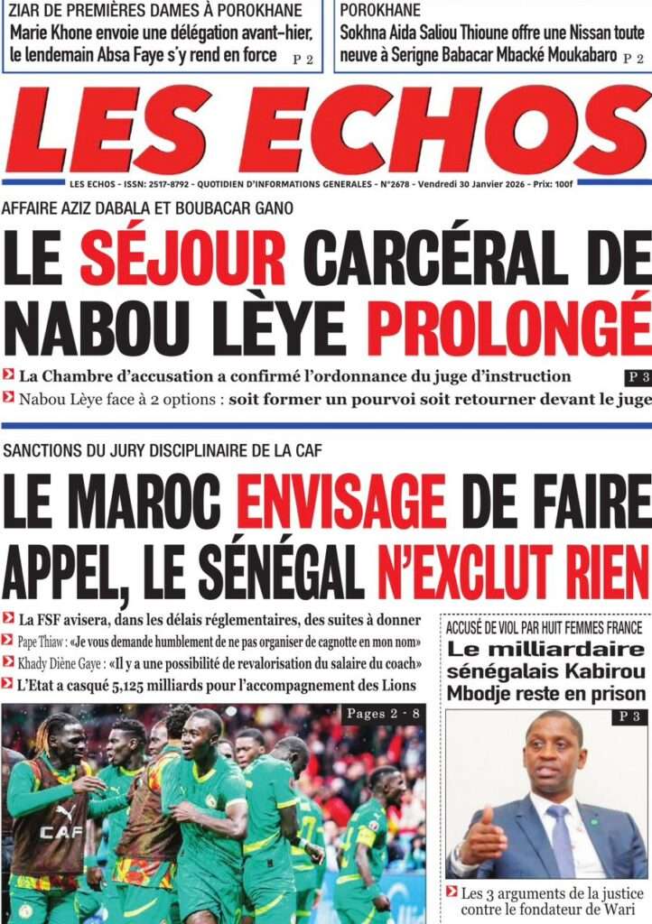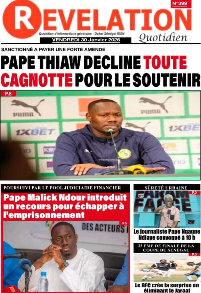 A la Une Actualité La Une Des Quotidiens – Vendredi 30 Janvier 2026 (Avec Ma Revue De Presse) Bour Sine janvier 30, 2026 0 Post navigation Previous: ÉPHÉMÉRIDES DU 29 JANVIERNext: Madiambal Diagne fait l’objet d’une plainte de son fils Mouhamed Diagne More Stories A la Une Actualité Politique Ce que change la nouvelle loi électorale adoptée par les députés Bour Sine avril 28, 2026 0 A la Une Actualité Politique « Ensemble, nous sommes une force »Par Hamidou Thiaw, Président du MPR Bour Sine avril 28, 2026 0 A la Une Actualité Pape Malick Ndour envoyé en prison Bour Sine avril 28, 2026 0 Laisser un commentaire Annuler la réponseVotre adresse e-mail ne sera pas publiée. Les champs obligatoires sont indiqués avec *Commentaire * Nom * E-mail * Site web Enregistrer mon nom, mon e-mail et mon site dans le navigateur pour mon prochain commentaire.