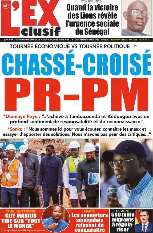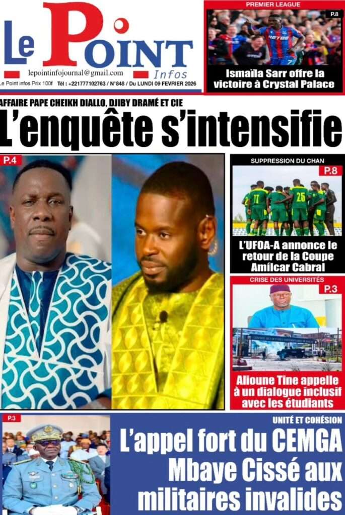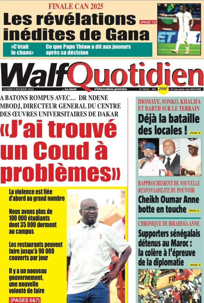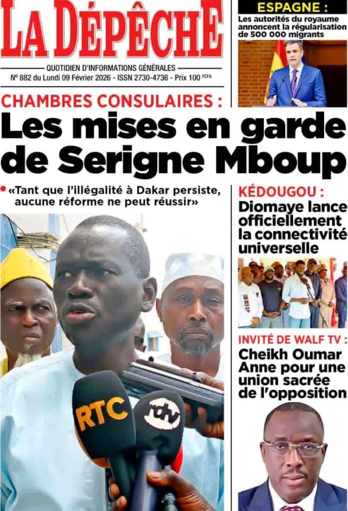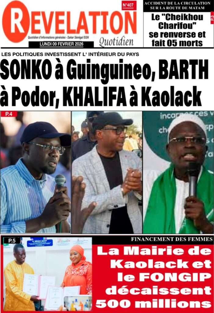 A la Une Actualité La Une Des Quotidiens – Lundi 09 Février 2026 (Avec Ma Revue De Presse) Bour Sine février 9, 2026 0 Post navigation Previous: Arrestation de Pape Cheikh Diallo et Djiby Dramé : ce qu’il faut savoir…Next: La Une Des Quotidiens – Mardi 10 Février 2026 (Avec Ma Revue De Presse) More Stories A la Une Actualité Politique Ce que change la nouvelle loi électorale adoptée par les députés Bour Sine avril 28, 2026 0 A la Une Actualité Politique « Ensemble, nous sommes une force »Par Hamidou Thiaw, Président du MPR Bour Sine avril 28, 2026 0 A la Une Actualité Pape Malick Ndour envoyé en prison Bour Sine avril 28, 2026 0 Laisser un commentaire Annuler la réponseVotre adresse e-mail ne sera pas publiée. Les champs obligatoires sont indiqués avec *Commentaire * Nom * E-mail * Site web Enregistrer mon nom, mon e-mail et mon site dans le navigateur pour mon prochain commentaire.