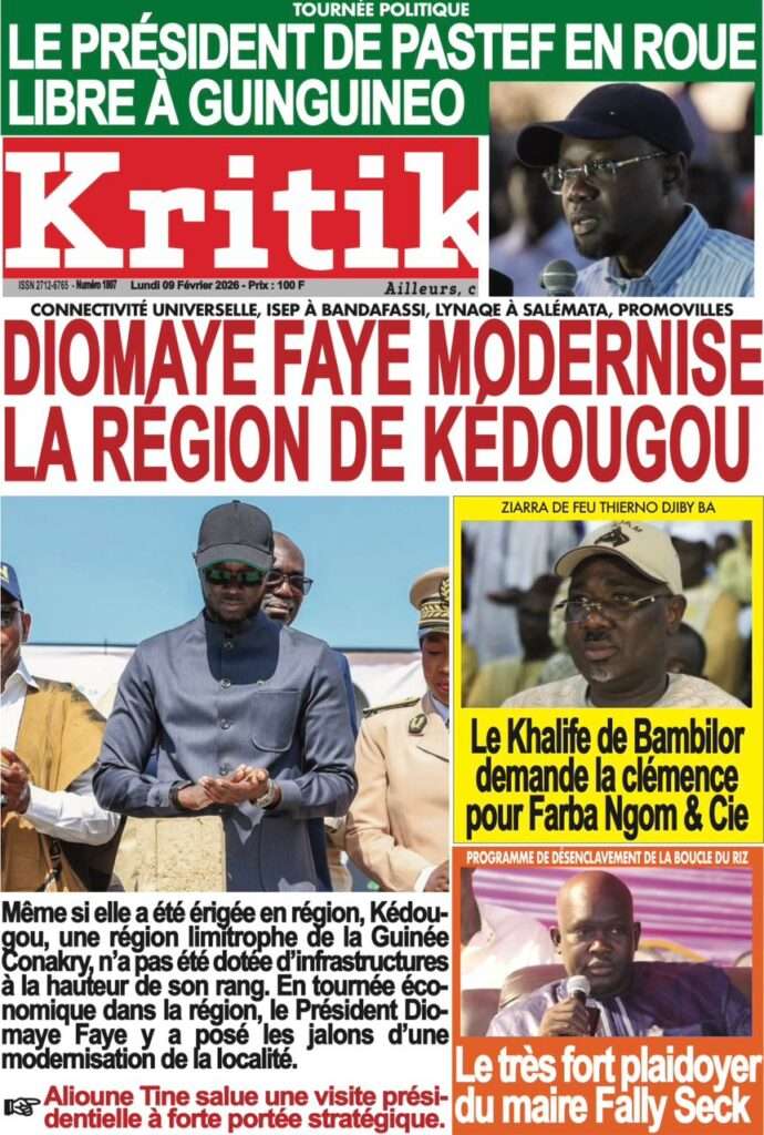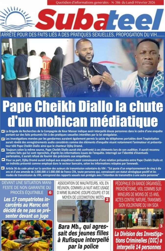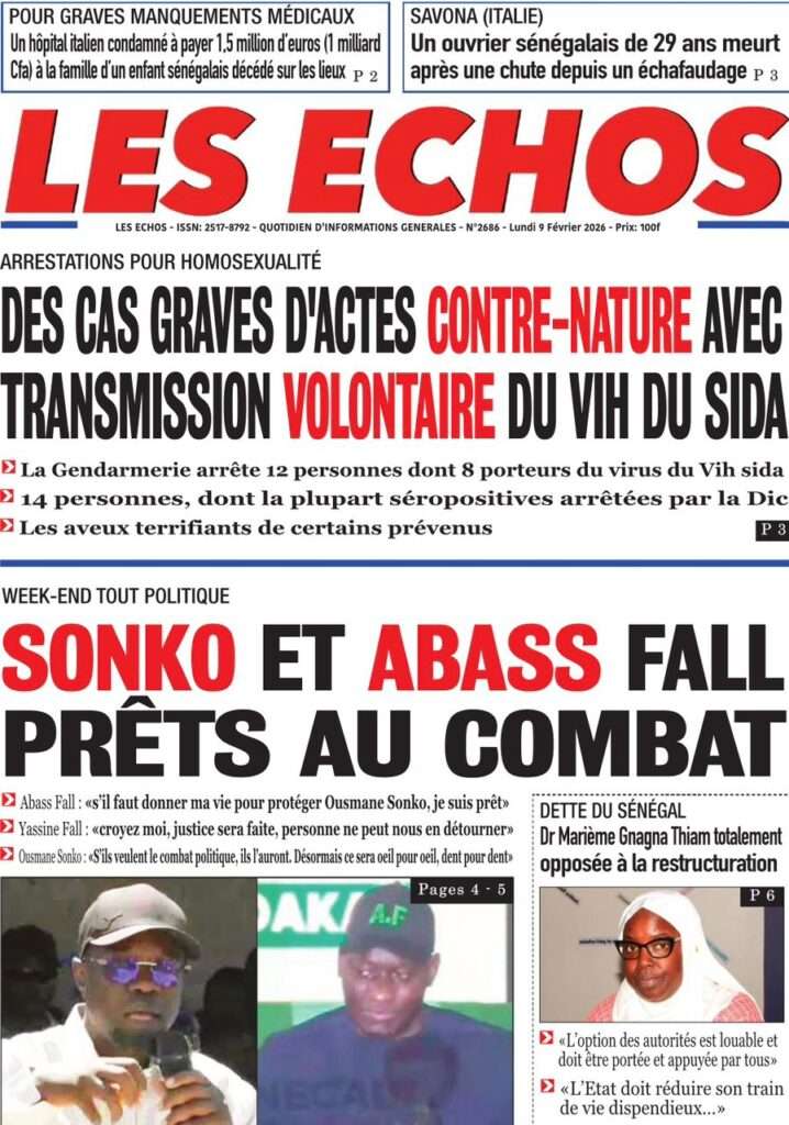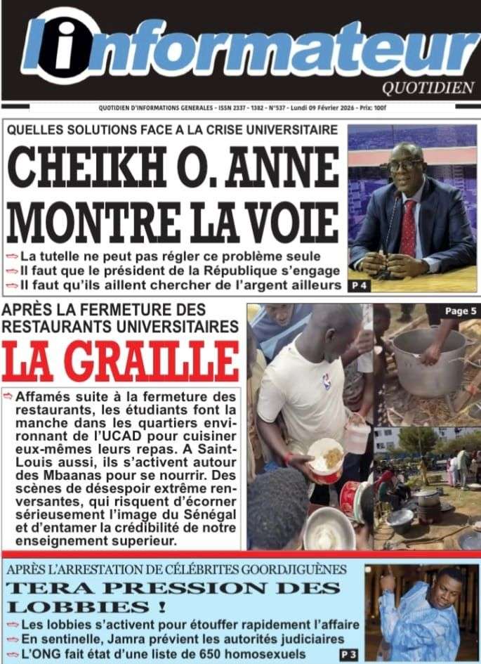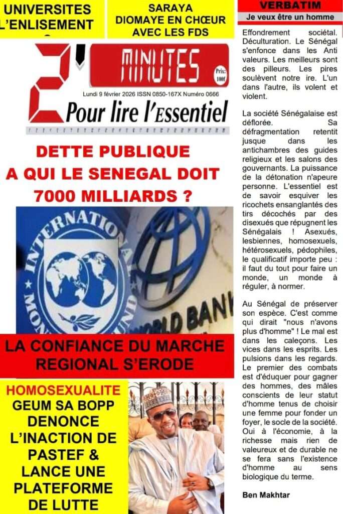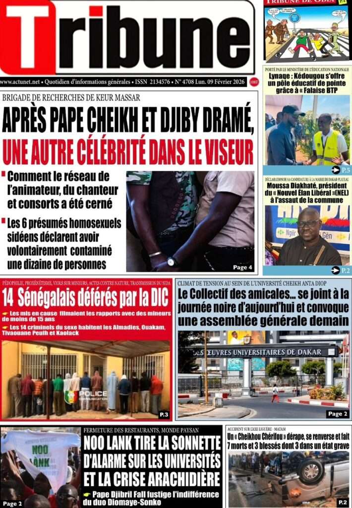 A la Une Actualité La Une Des Quotidiens – Lundi 09 Février 2026 (Avec Ma Revue De Presse) Bour Sine février 9, 2026 0 Post navigation Previous: Arrestation de Pape Cheikh Diallo et Djiby Dramé : ce qu’il faut savoir…Next: La Une Des Quotidiens – Mardi 10 Février 2026 (Avec Ma Revue De Presse) More Stories A la Une Actualité Politique Ce que change la nouvelle loi électorale adoptée par les députés Bour Sine avril 28, 2026 0 A la Une Actualité Politique « Ensemble, nous sommes une force »Par Hamidou Thiaw, Président du MPR Bour Sine avril 28, 2026 0 A la Une Actualité Pape Malick Ndour envoyé en prison Bour Sine avril 28, 2026 0 Laisser un commentaire Annuler la réponseVotre adresse e-mail ne sera pas publiée. Les champs obligatoires sont indiqués avec *Commentaire * Nom * E-mail * Site web Enregistrer mon nom, mon e-mail et mon site dans le navigateur pour mon prochain commentaire.