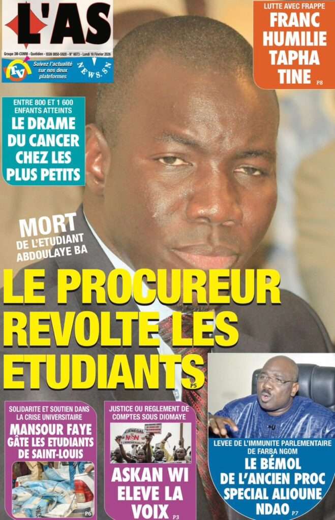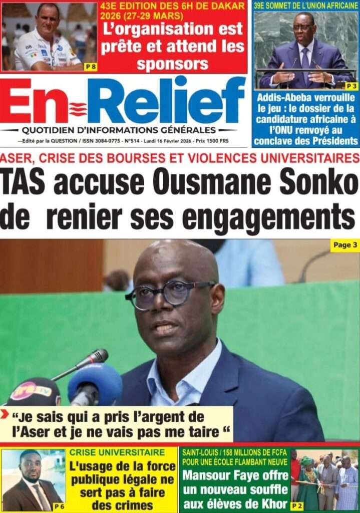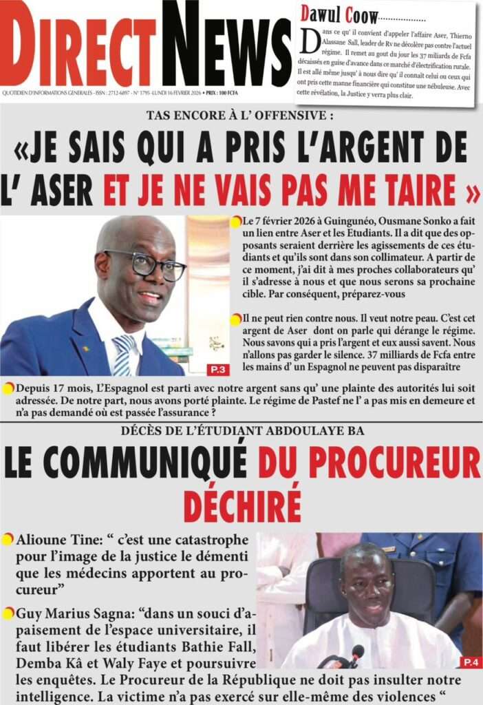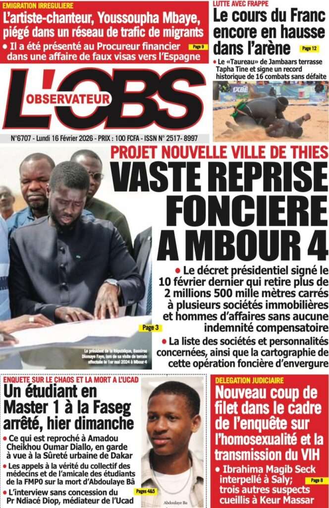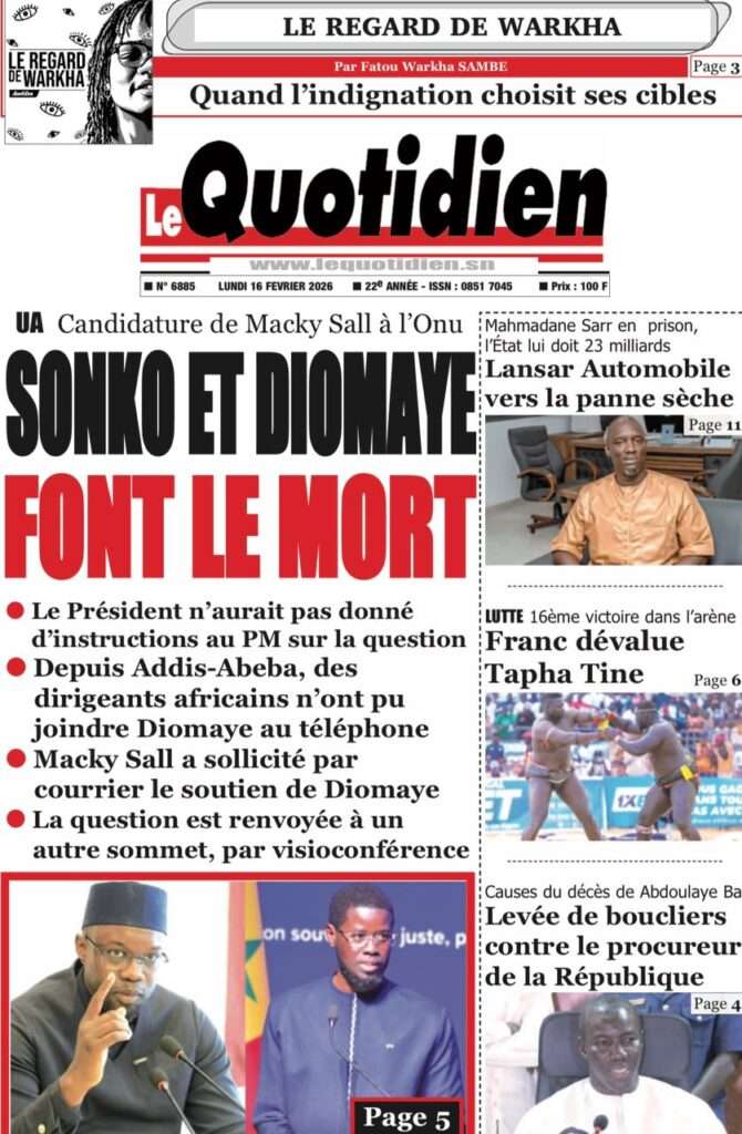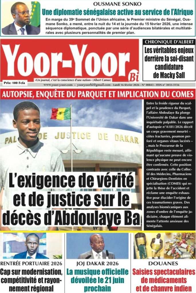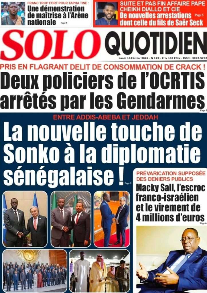 A la Une La Une Des Quotidiens – Lundi 16 Février 2026 (Avec Ma Revue De Presse) Bour Sine février 16, 2026 0 Post navigation Previous: REFONDATION DU SYSTÈME ÉDUCATIF : OSER ENFIN LA RÉFORME DE LA SÉLECTION DES ÉLITES (PAR SOREU MALICK DIOP)Next: Session chargée à l’Assemblée : trois jours pour trancher sur l’immunité, l’armée et les médias More Stories A la Une Actualité Politique Ce que change la nouvelle loi électorale adoptée par les députés Bour Sine avril 28, 2026 0 A la Une Actualité Politique « Ensemble, nous sommes une force »Par Hamidou Thiaw, Président du MPR Bour Sine avril 28, 2026 0 A la Une Actualité Pape Malick Ndour envoyé en prison Bour Sine avril 28, 2026 0 Laisser un commentaire Annuler la réponseVotre adresse e-mail ne sera pas publiée. Les champs obligatoires sont indiqués avec *Commentaire * Nom * E-mail * Site web Enregistrer mon nom, mon e-mail et mon site dans le navigateur pour mon prochain commentaire.
