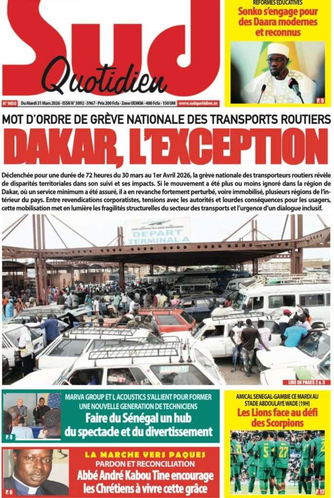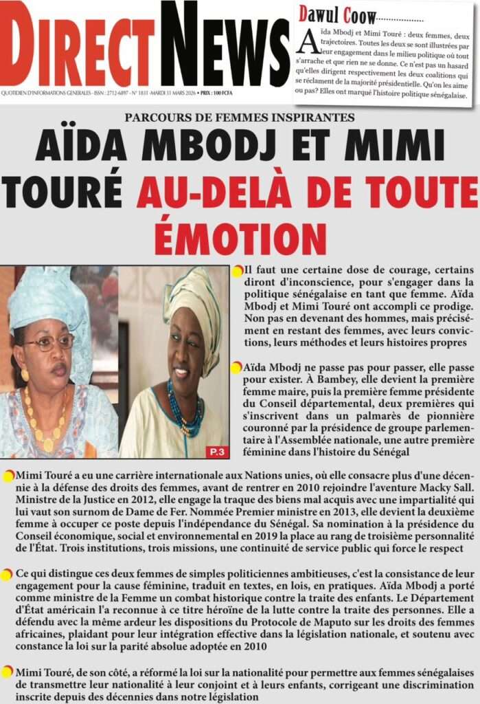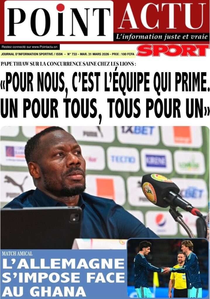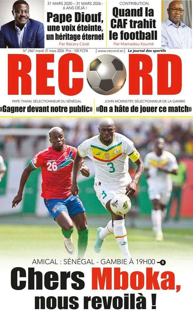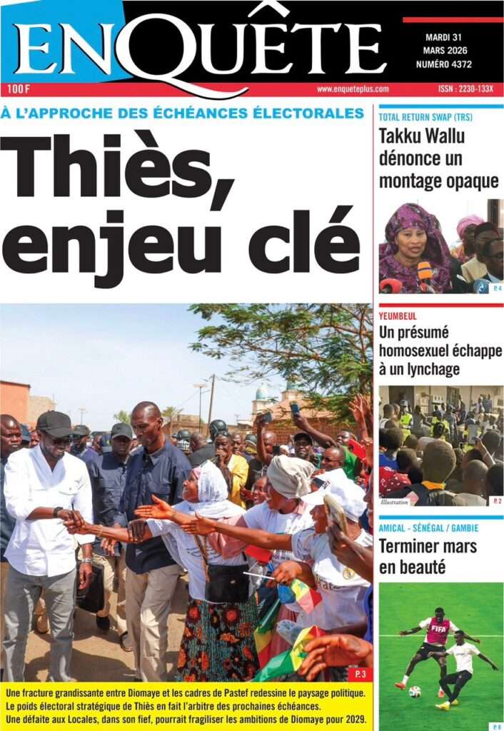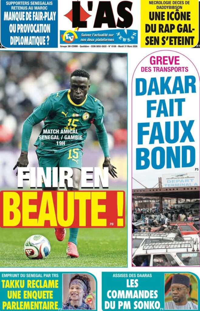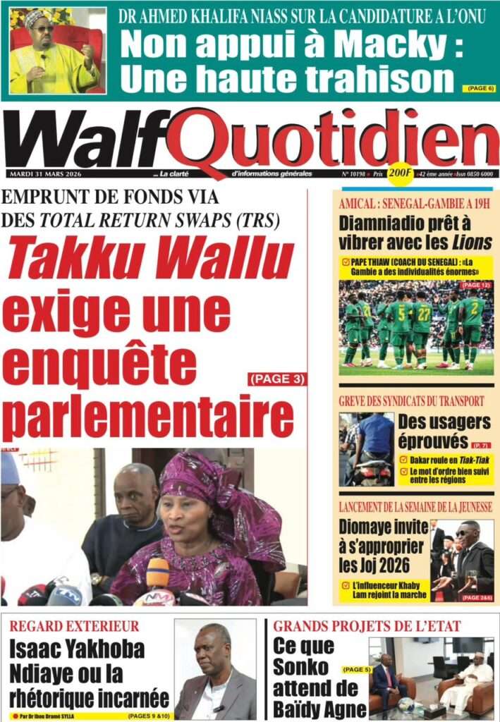 A la Une Actualité Une Des Quotidiens – Mardi 31 Mars 2026 (Avec Ma Revue De Presse) Bour Sine mars 31, 2026 0 Post navigation Previous: Nécrologie : Décès du rappeur Daddy Bibson, pionnier du rap wolofNext: Durcissement des sanctions contre l’homosexualité : la loi promulguée par le président Diomaye More Stories A la Une Actualité Politique Ce que change la nouvelle loi électorale adoptée par les députés Bour Sine avril 28, 2026 0 A la Une Actualité Politique « Ensemble, nous sommes une force »Par Hamidou Thiaw, Président du MPR Bour Sine avril 28, 2026 0 A la Une Actualité Pape Malick Ndour envoyé en prison Bour Sine avril 28, 2026 0 Laisser un commentaire Annuler la réponseVotre adresse e-mail ne sera pas publiée. Les champs obligatoires sont indiqués avec *Commentaire * Nom * E-mail * Site web Enregistrer mon nom, mon e-mail et mon site dans le navigateur pour mon prochain commentaire.
