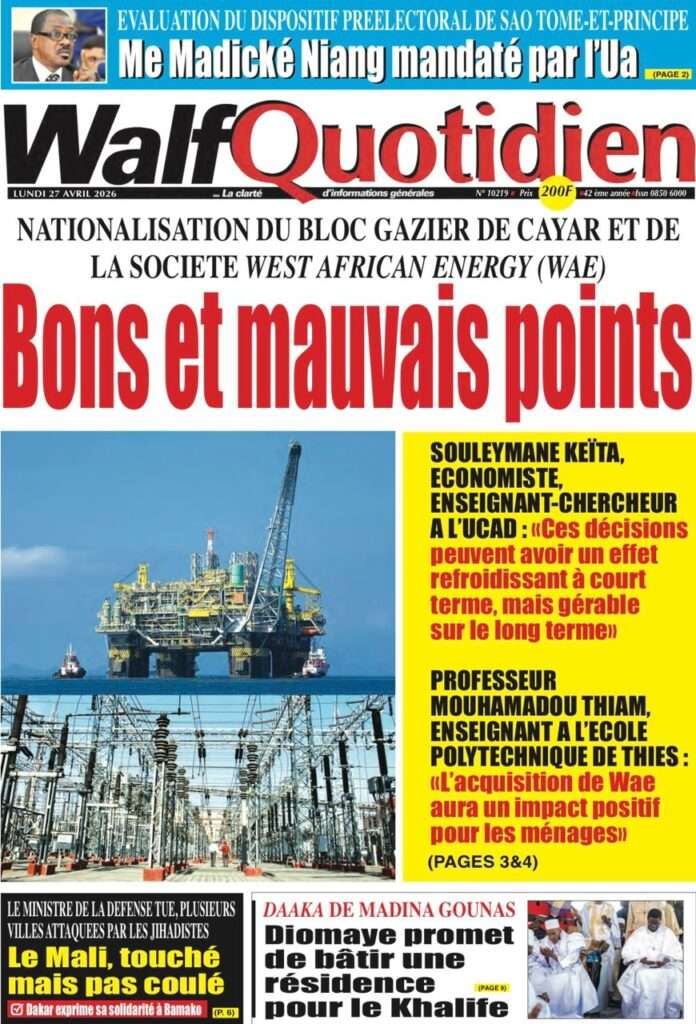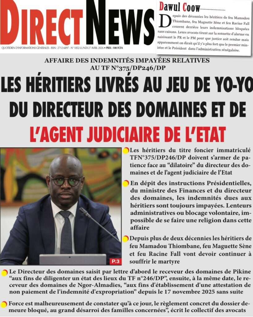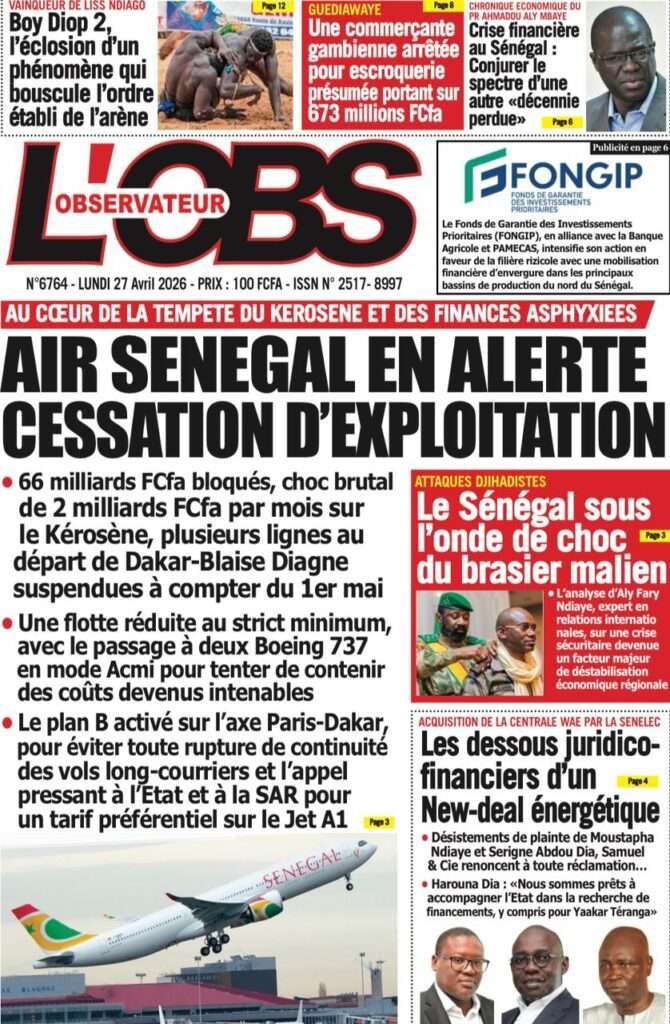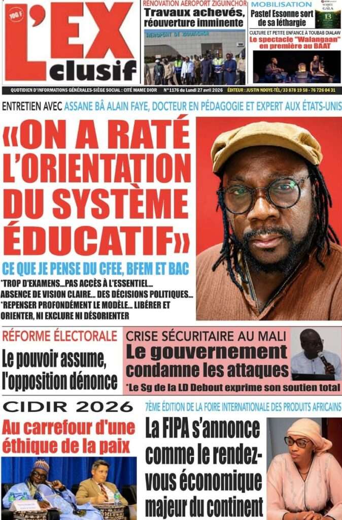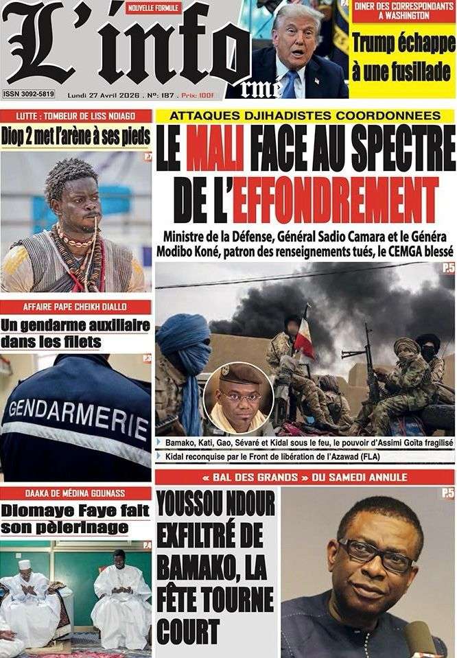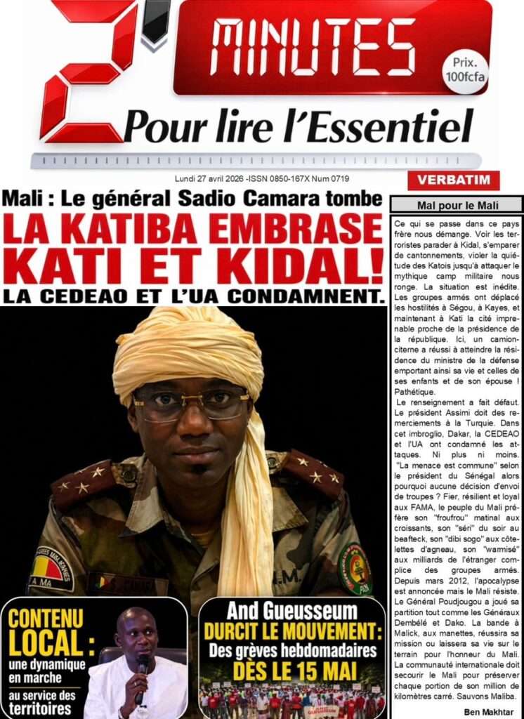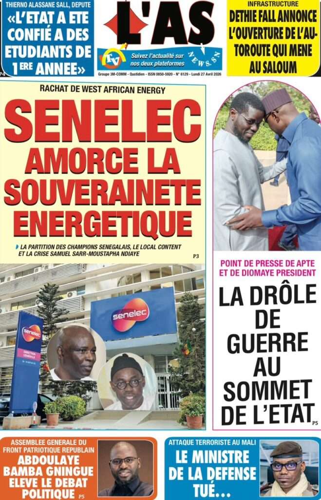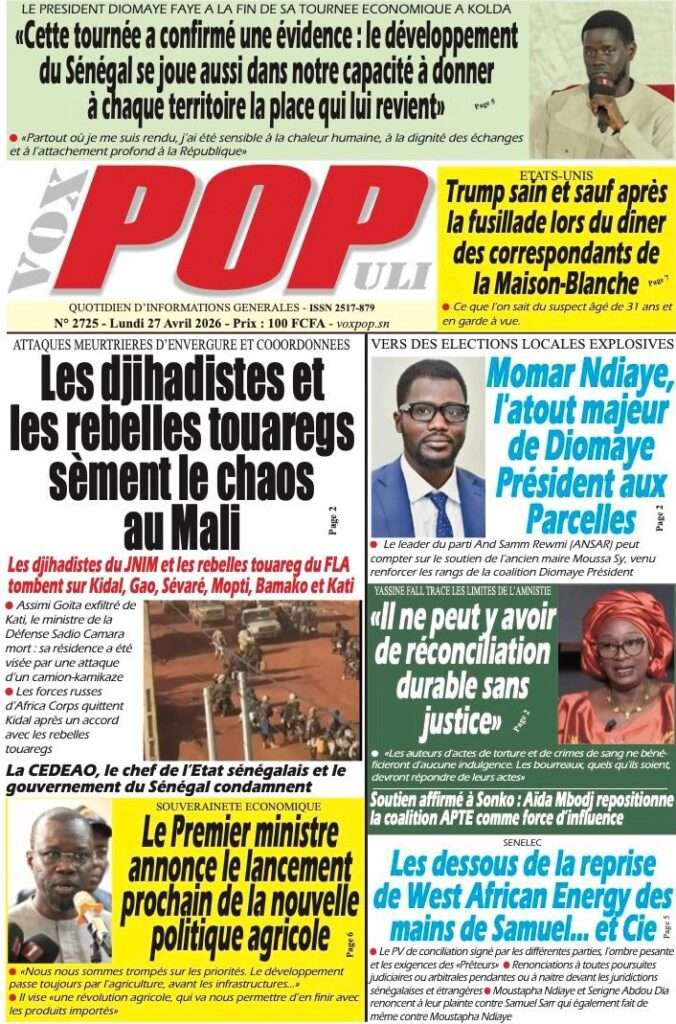 A la Une Actualité La Une Des Quotidiens – Lundi 27 Avril 2026 (Avec Ma Revue De Presse) Bour Sine avril 27, 2026 0 Post navigation Previous: Le ministre malien de la Défense, Sadio Camara, tué dans une attaque à KatiNext: Éphémérides du 27 avril (Par SenegalDates) More Stories A la Une Actualité Politique Ce que change la nouvelle loi électorale adoptée par les députés Bour Sine avril 28, 2026 0 A la Une Actualité Politique « Ensemble, nous sommes une force »Par Hamidou Thiaw, Président du MPR Bour Sine avril 28, 2026 0 A la Une Actualité Pape Malick Ndour envoyé en prison Bour Sine avril 28, 2026 0 Laisser un commentaire Annuler la réponseVotre adresse e-mail ne sera pas publiée. Les champs obligatoires sont indiqués avec *Commentaire * Nom * E-mail * Site web Enregistrer mon nom, mon e-mail et mon site dans le navigateur pour mon prochain commentaire.